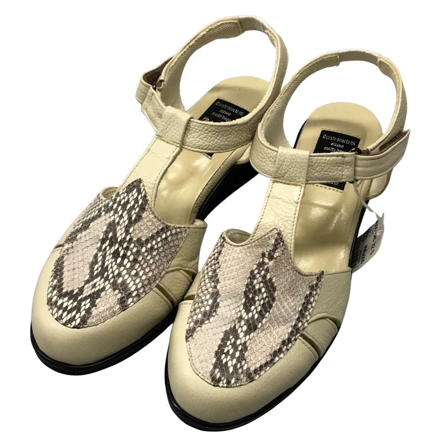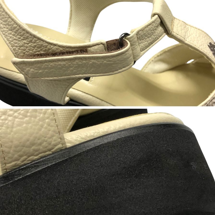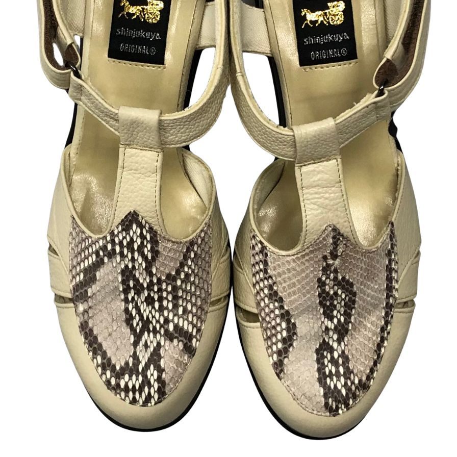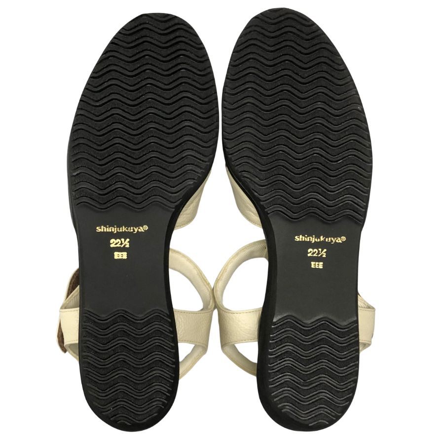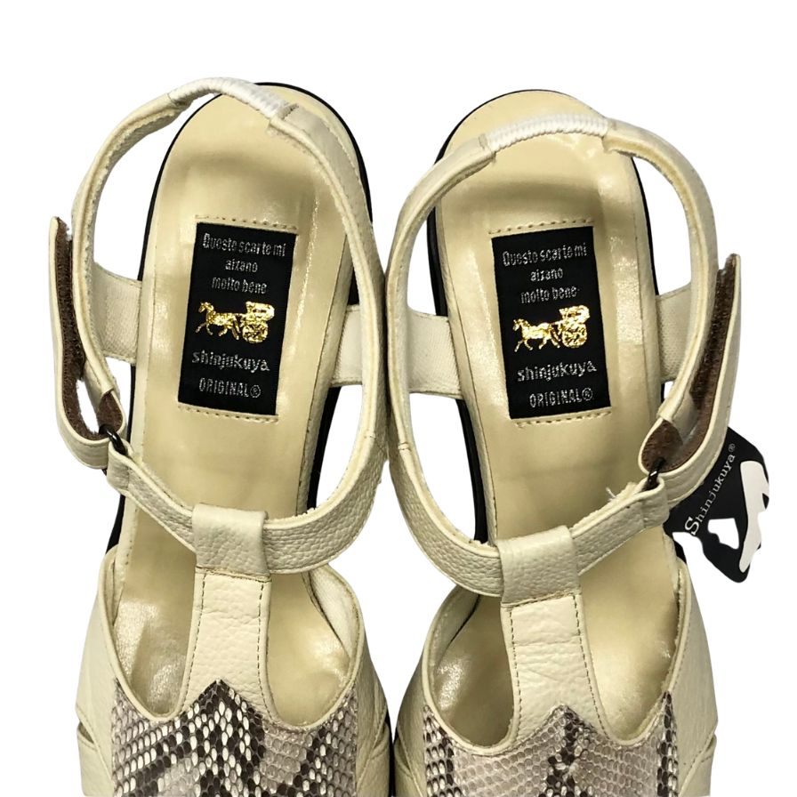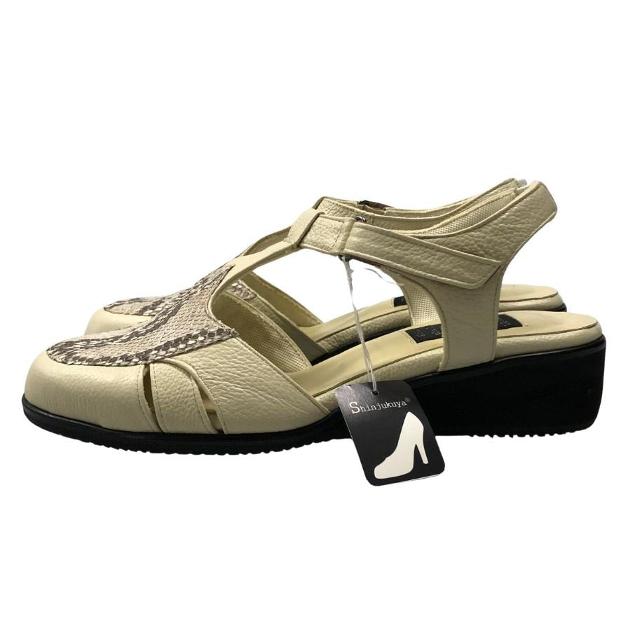 新宿屋 レザースサンダル レザー×パイソン 4500-545 22.5cm レディース アイボリー shinjukuya 約22.5cm【7-8】