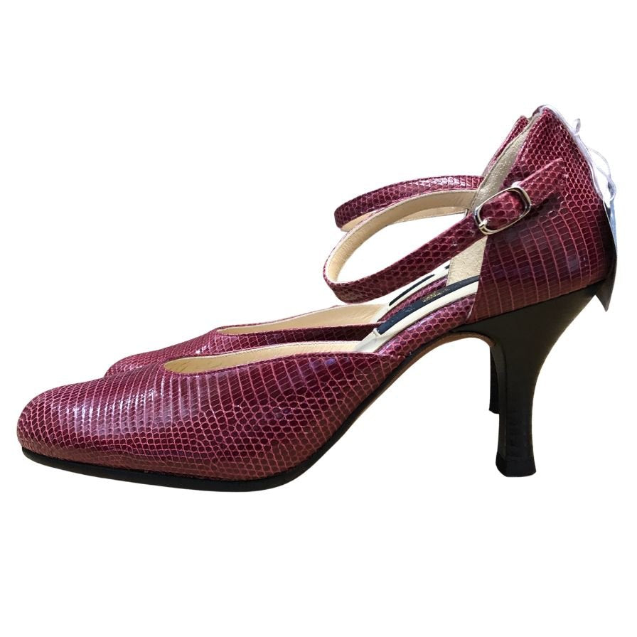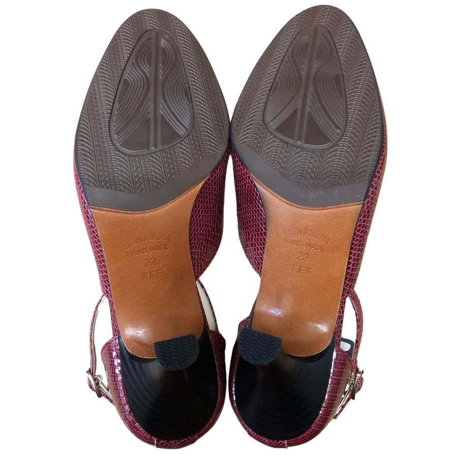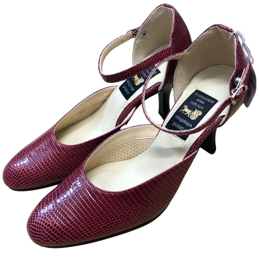 新宿屋 レザーパンプス リザード 7105-555 22cm レッド レディース shinjukuya 約22.0cm【7F3-3】