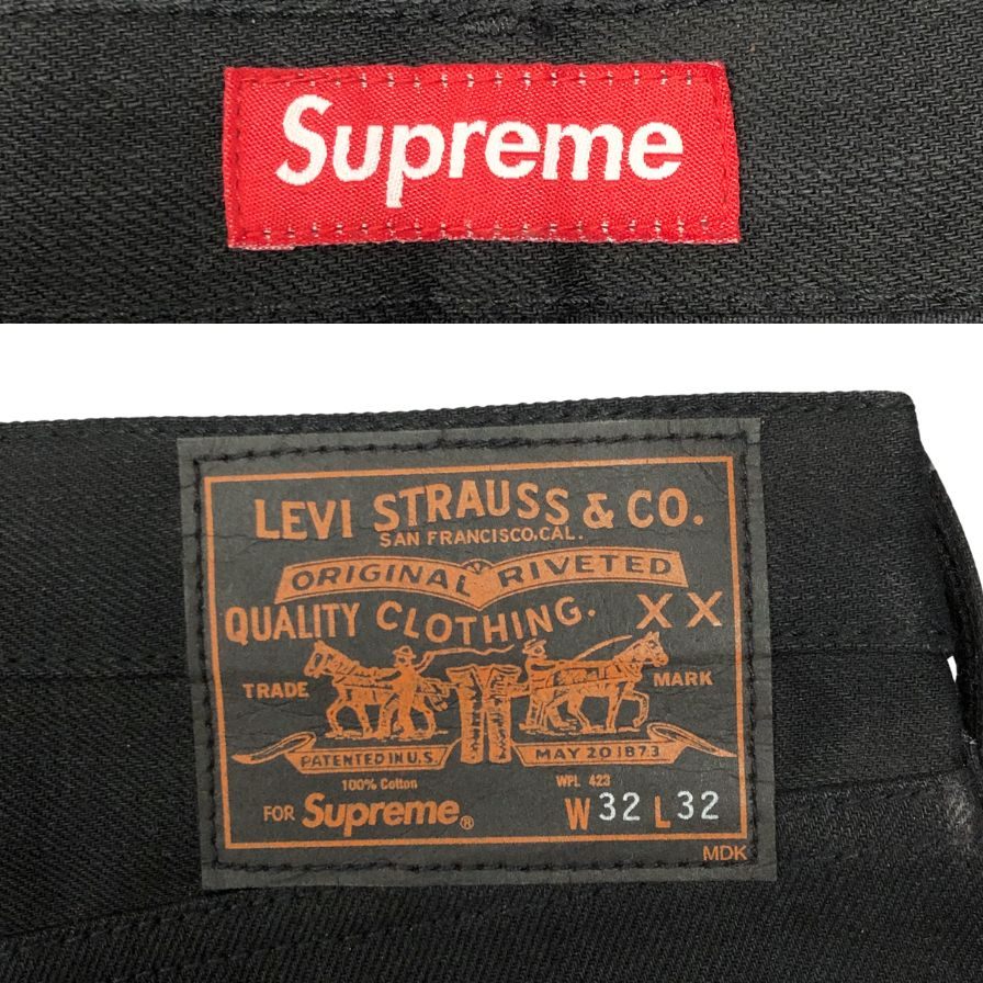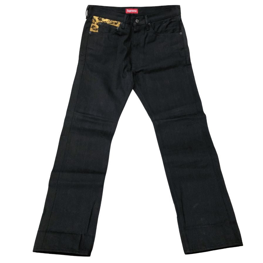 シュプリーム×リーバイス ブラックデニムパンツ 12AW 505 ジップ フライレオパードあしらい メンズ サイズ32×32 ブラック SUPREME×Levi's 【AFB31】