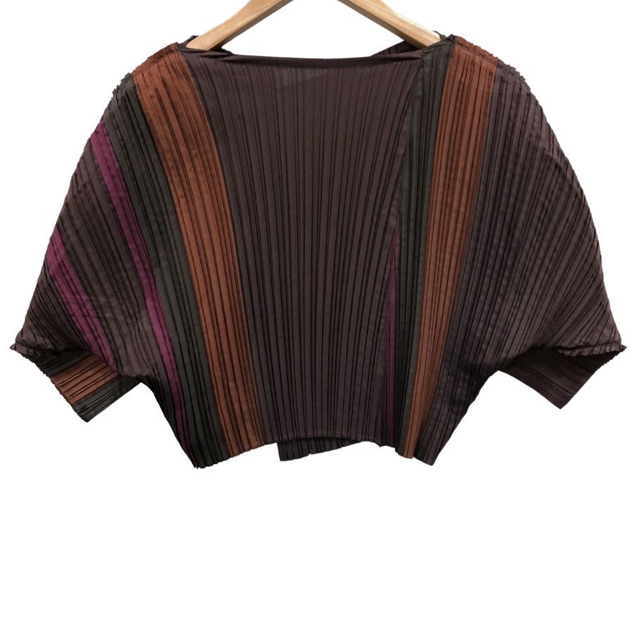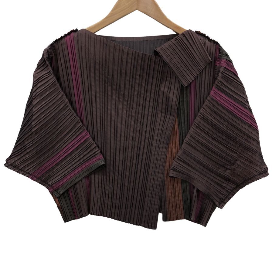 極美品◆イッセイミヤケ プリーツ 変形ショート1B ジャケット レディース IM84FO615 ブラウン系 サイズ2 ISSEY MIYAKE 【AFB38】