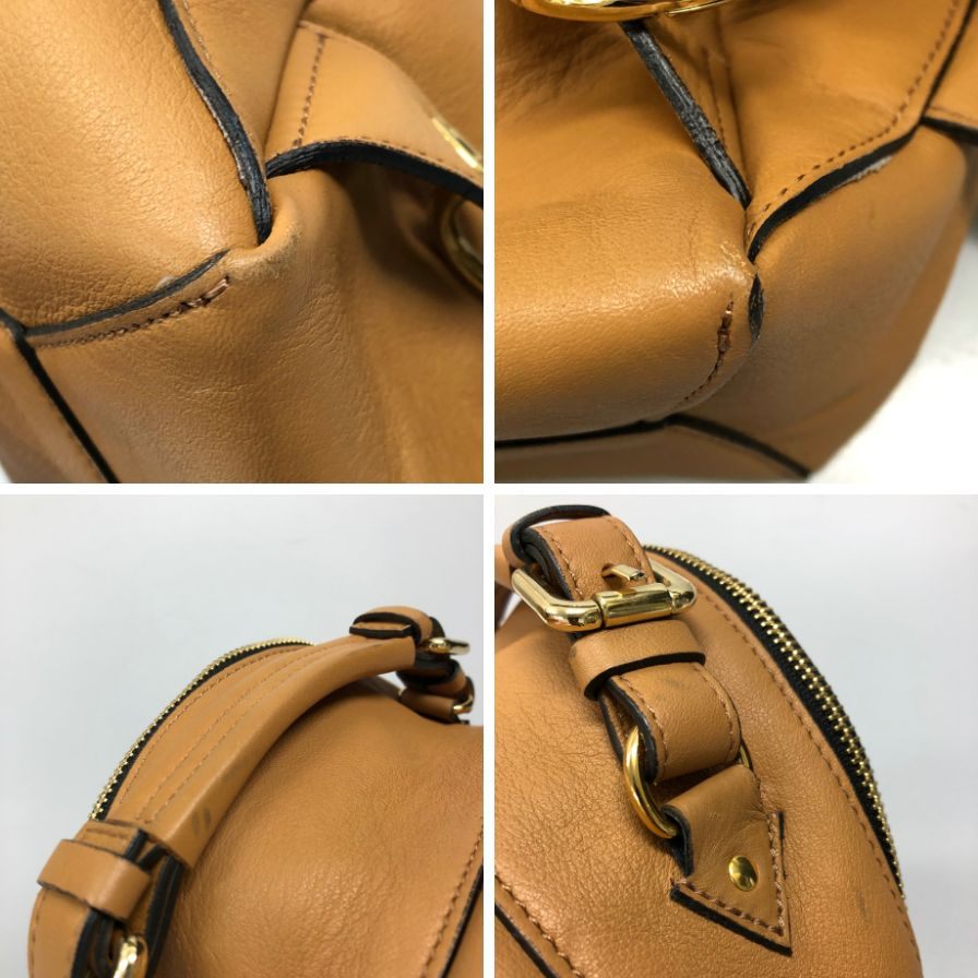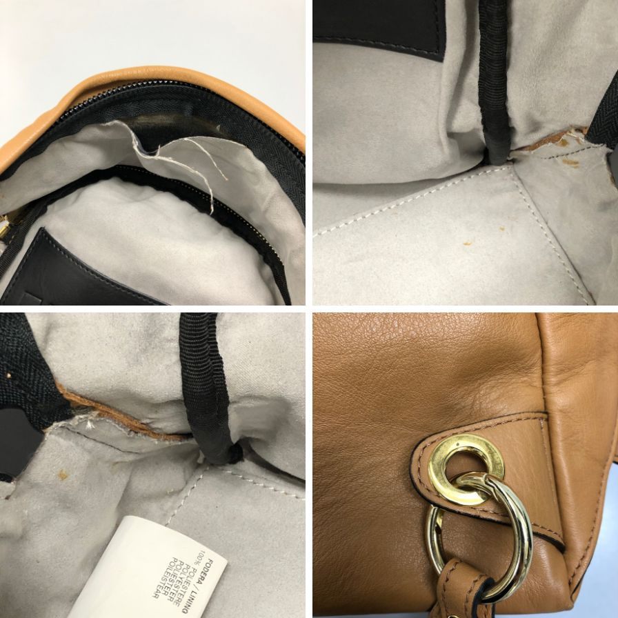 シワ、表面・金属部分にスレが見られます。 内側状態ランク【B】 上部に破れ、底にシミが見られます。 |