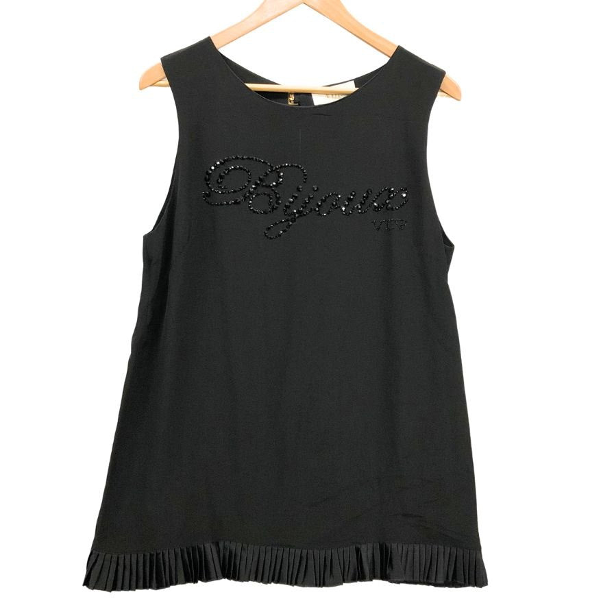 美品◆ヴィア デッレ ペルレ ノースリーブシャツ レディース ブラック スパンコール サイズ42 VIADELLEPERLE VDP COLLECTION 【AFB46】