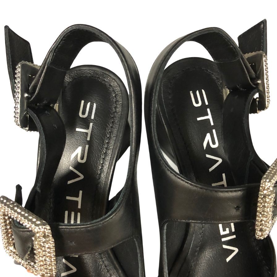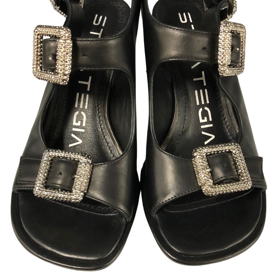 ストラテジア スクエアヒール サンダル レディース サイズ36 ブラック Strategia 約22.5cm【AFC2】