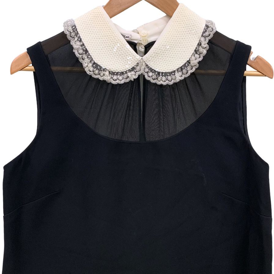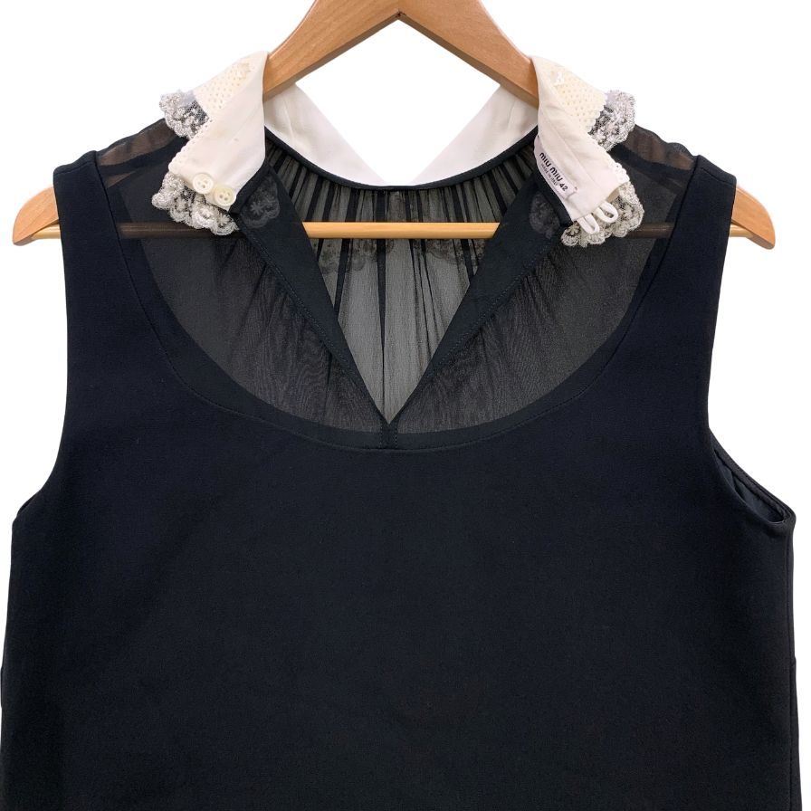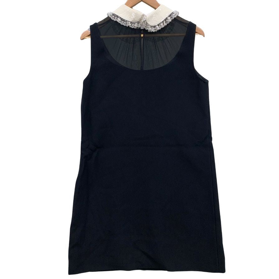 中古◆ミュウミュウノースリーブ ワンピース 襟付 ビスコースレーヨン レディース サイズ42 ブラック miumiu 【AFB25】