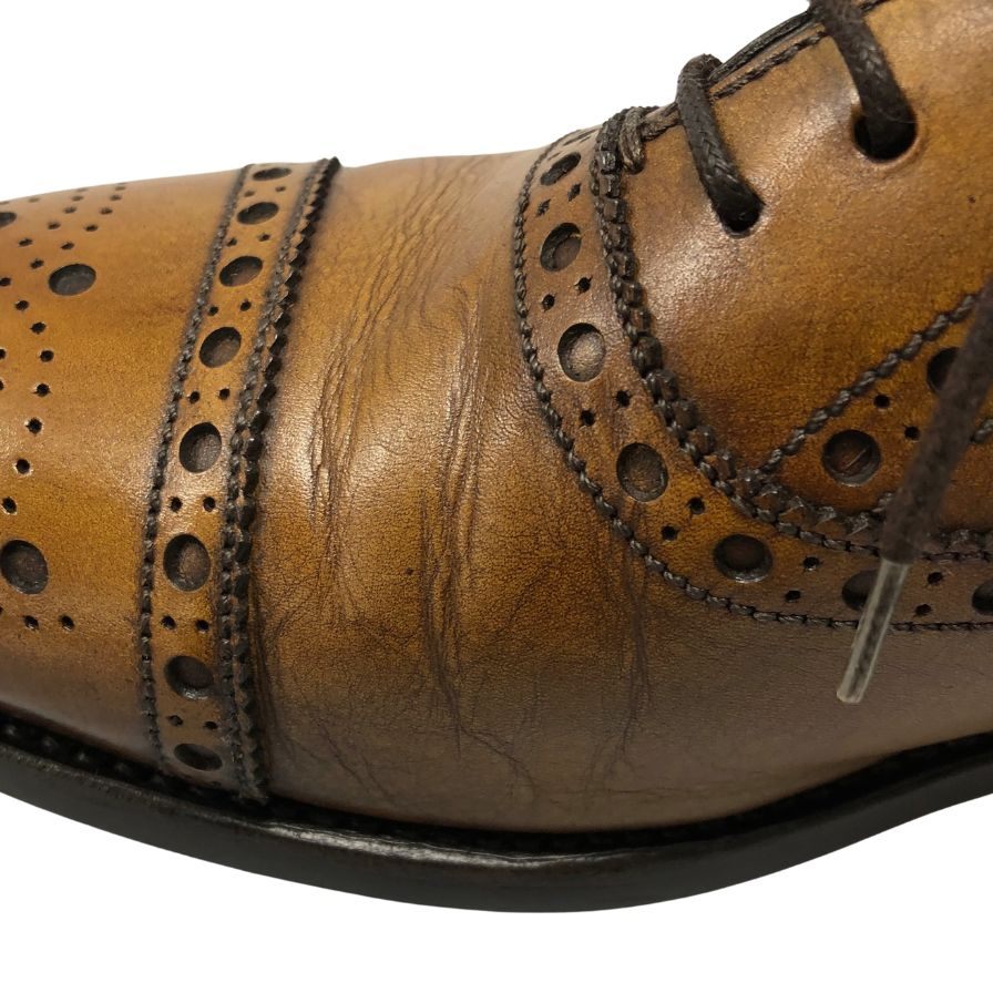 バーウィック レザーシューズ 4206 セミブローグ ブラウン サイズ6.5 メンズ Berwick 約25.5cm【AFD4】