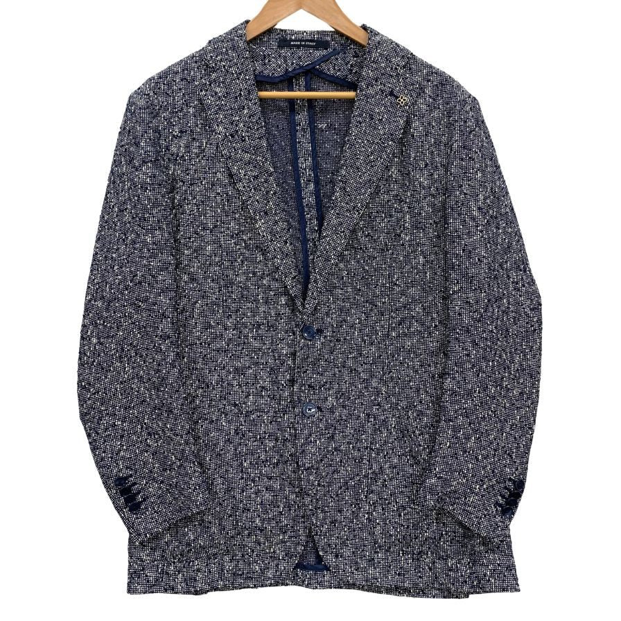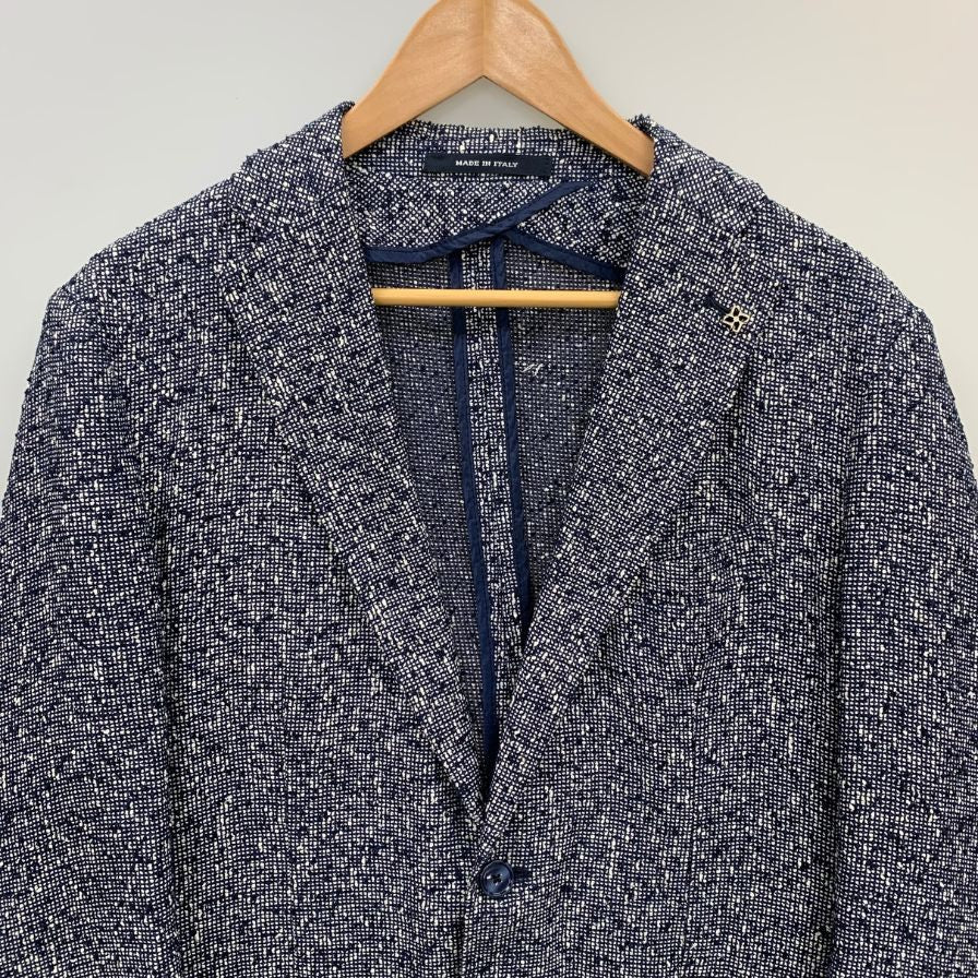 極美品◆タリアトーレ 2B テーラードジャケット 麻混綿 メンズ 48 ブルー系 TAGLIATORE 【AFB42】