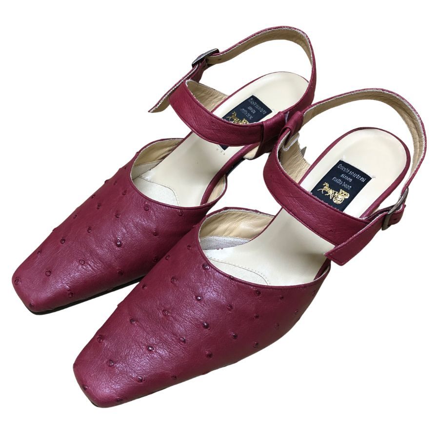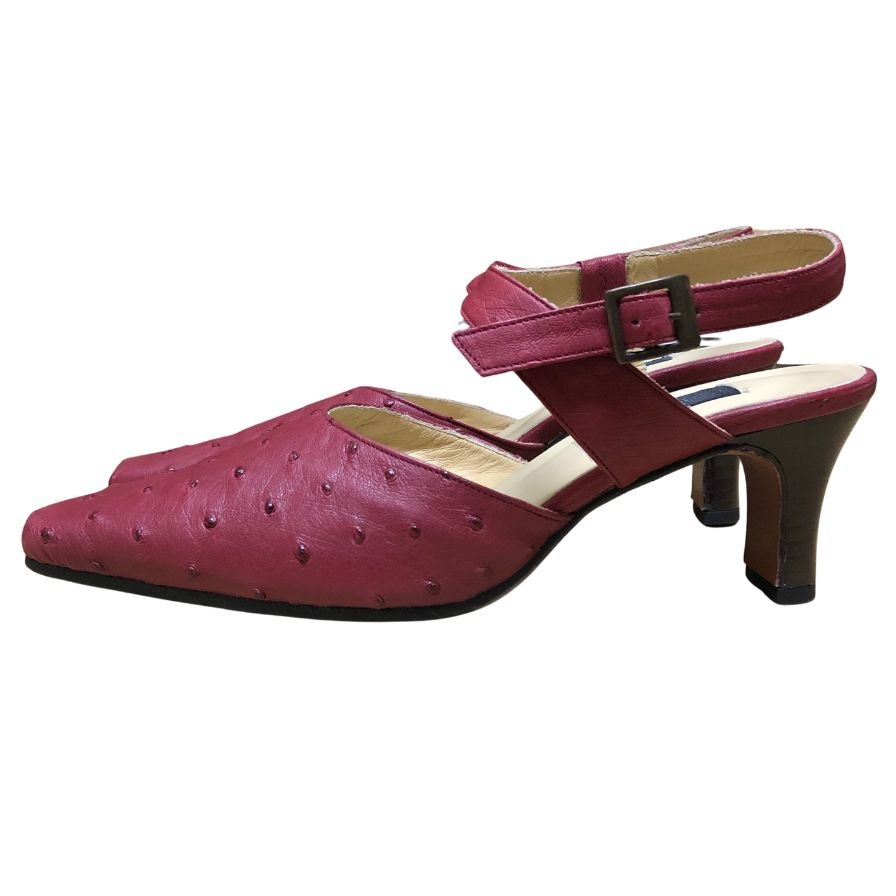 新宿屋 レザーパンプス オーストリッチ 6207-075 レッド レディース サイズ23.5cm shinjukuya 約23.5cm【7F3-3】