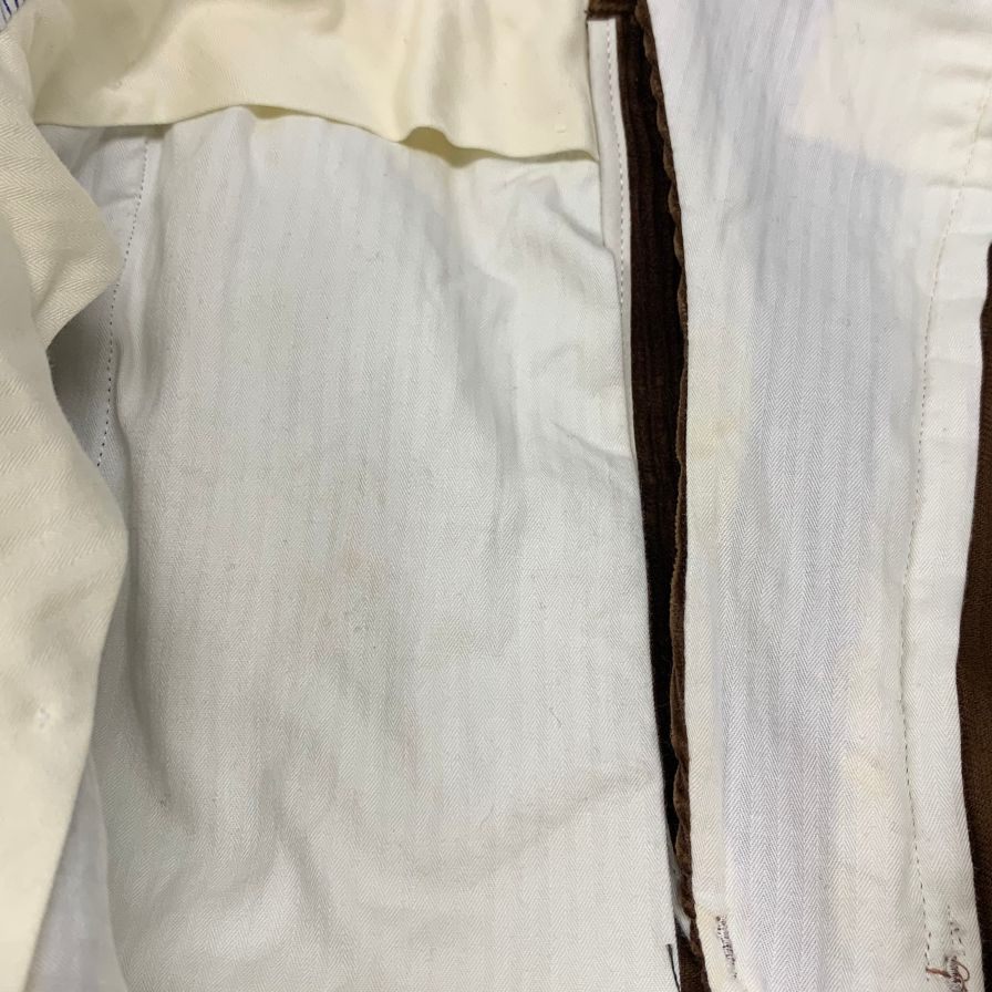 若干のスレ、内側ウエスト部・ジッパー付近・ポケットにシミが見られます。 |