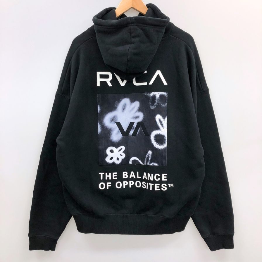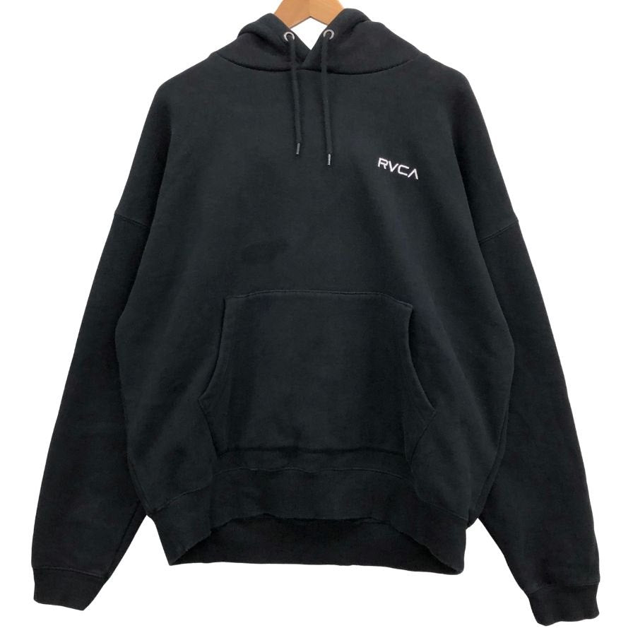 中古◆ルーカ パーカー スウェット プルオーバー 裏起毛 フーディー 刺繍 プリント デザイン ブラック メンズ サイズS RVCA 【AFB34】