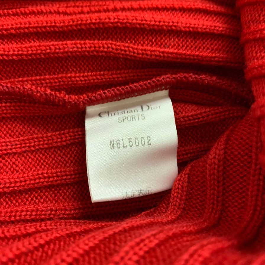 美品◆クリスチャンディオール ニット リブ編み ウール タートルネック セーター レディース サイズL レッド グレー Christian Dior SPORTS 【AFB9】