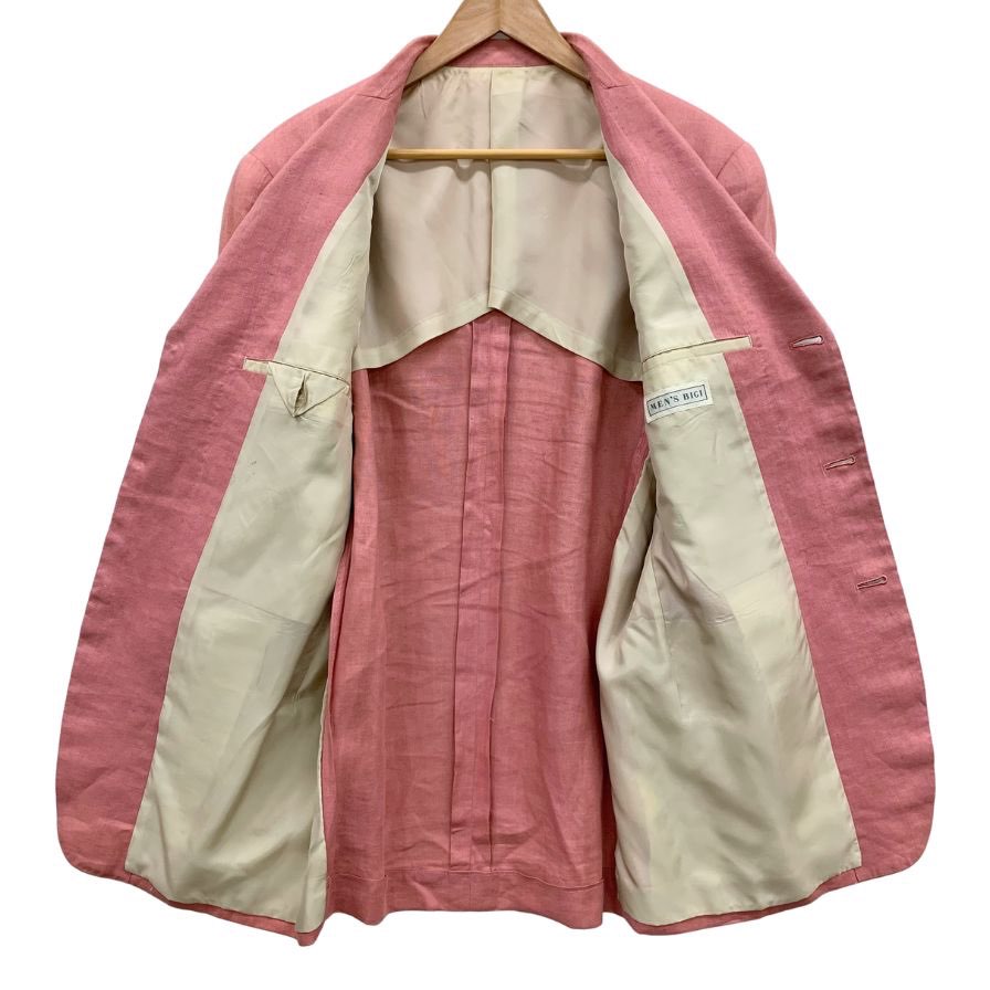 中古◆メンズビギ テーラードジャケット リネン 3B 背抜き 薄手 春夏 ピンク メンズ サイズL Men's BIGI 【AFB26】