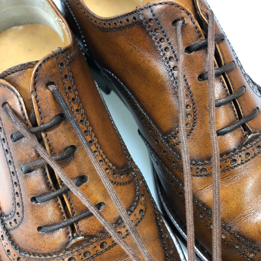 タニノクリスチー レザーシューズ ウイングチップ 128057 カーフ ブラウン サイズ9 メンズ TANINO CRISCI 約27.5cm【AFC2】