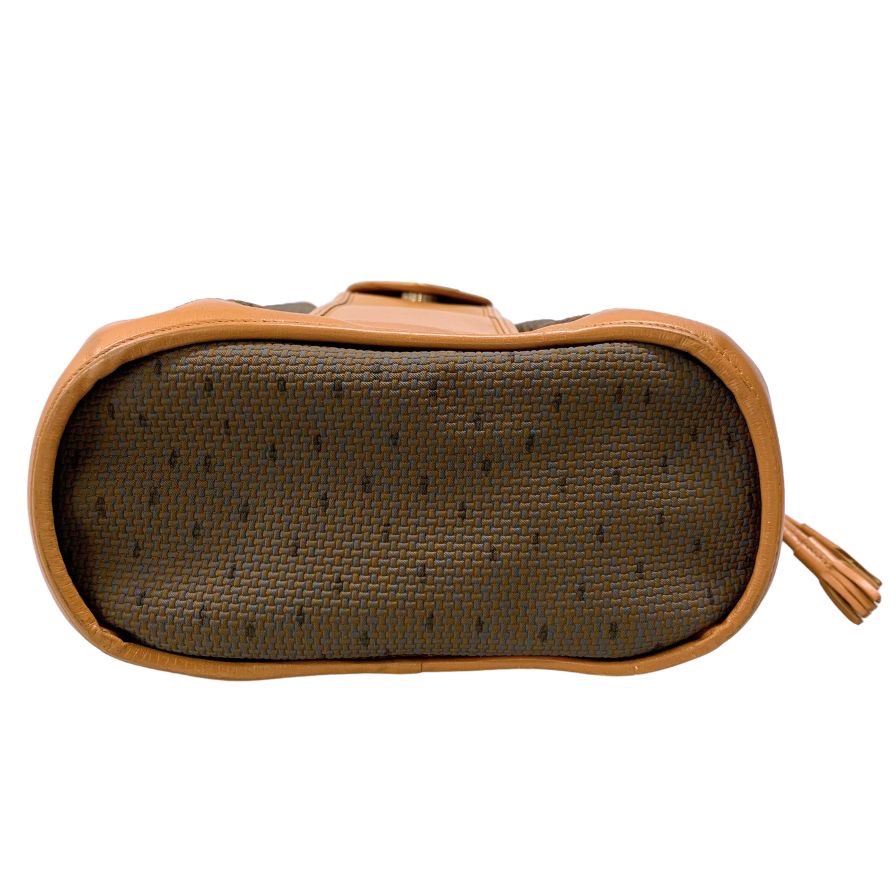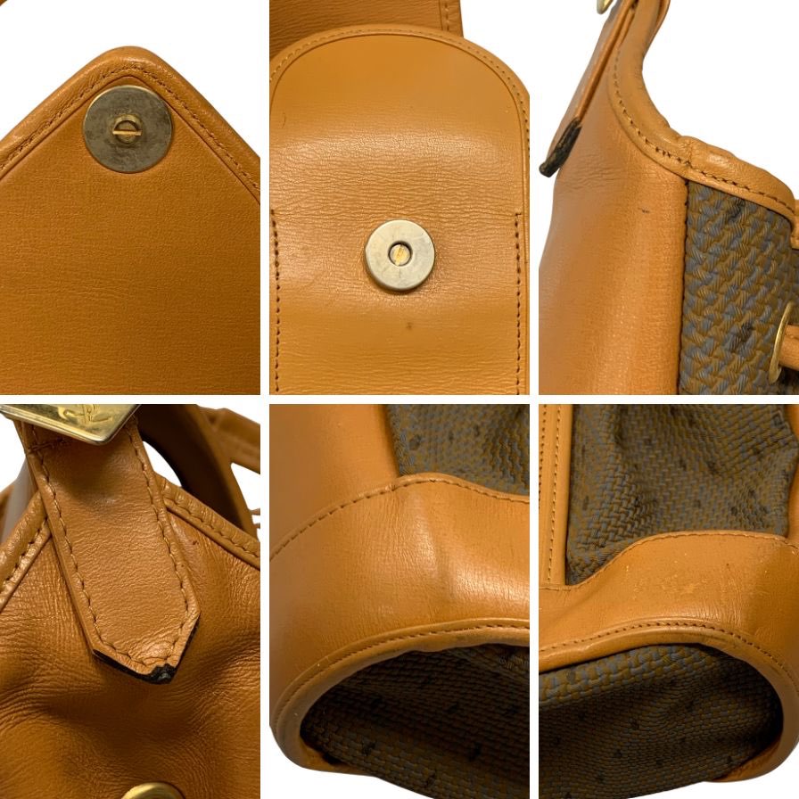 イヴサンローラン バケツ型 ワンショルダー バッグ YSL ロゴ ゴールド金具 キャンバス レザー ブラウン Yves Saint Laurent【AFE6】
