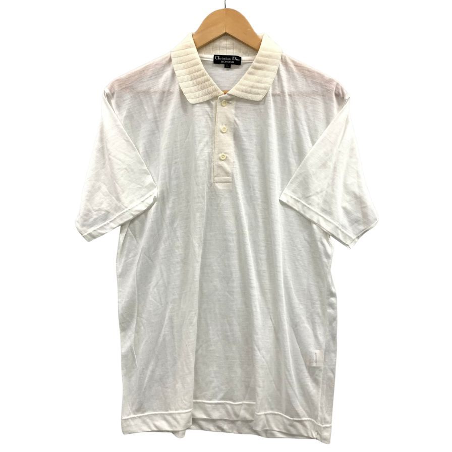 極美品◆クリスチャンディオール ポロシャツ L ホワイト Chritian Dior MONSIEUR 【AFB4】