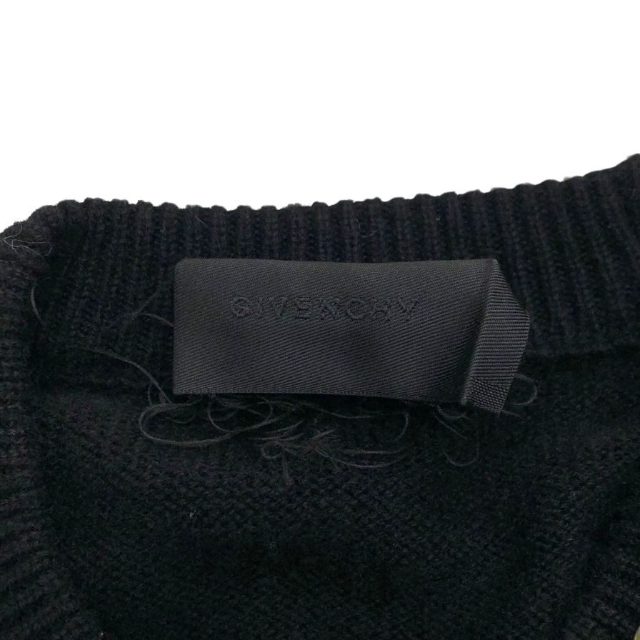 極美品◆ジバンシー ラウンドネックニット セーター ネックチェーン レディース カシミア サイズM ブラック BW90CM4Z9K GIVENCHY 【AFB5】