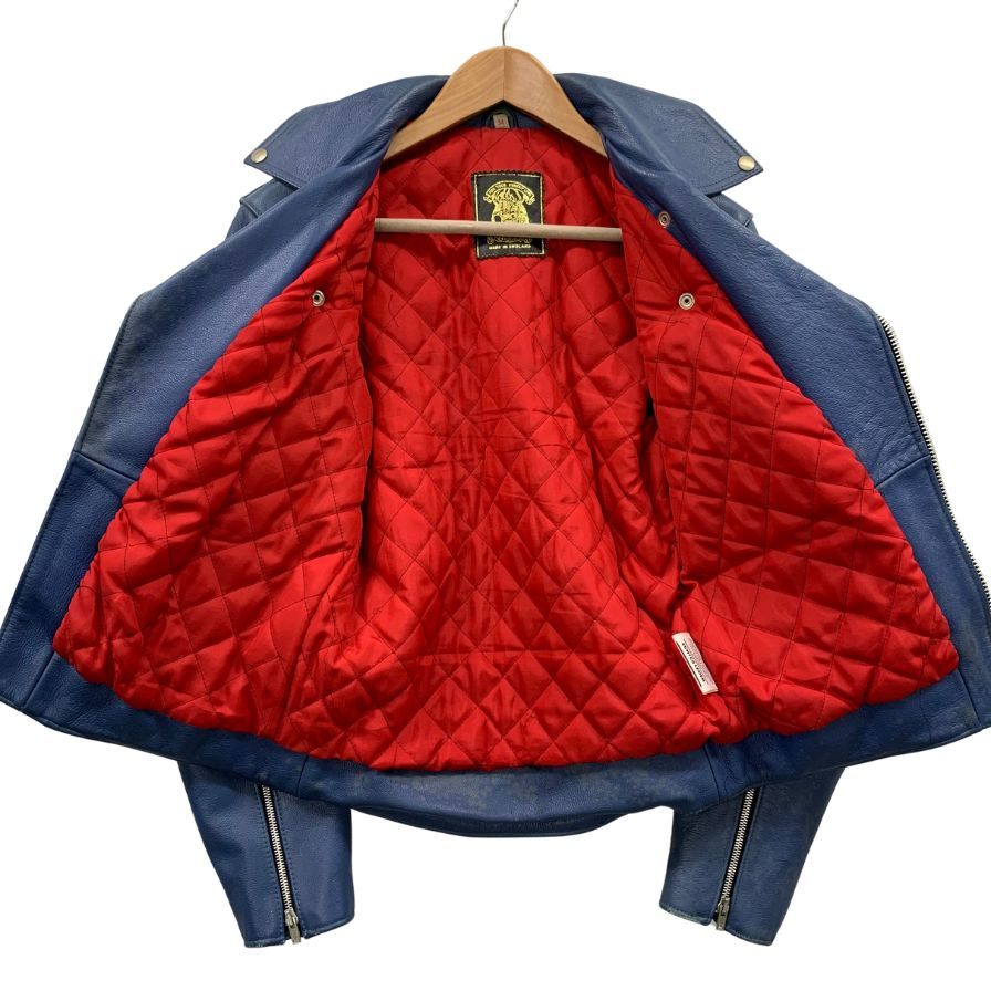 中古◆666 トリプルシックス ダブルライダース イングランド製 初期 ヴィンテージ 死神タグ ターコイズブルー サイズ34 TRIPLE SIX 【AFA6】
