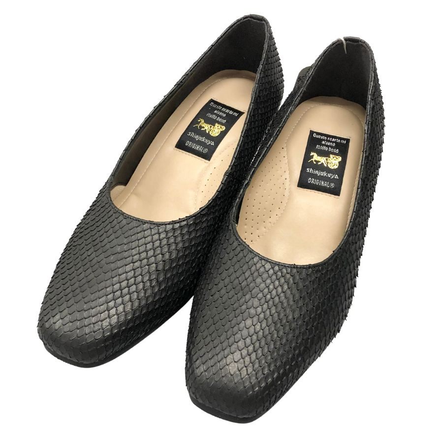 新宿屋 レザーパンプス マットパイソン 5410-155 ブラック 22.5cm レディース shinjukuya 約22.5cm【7-5】