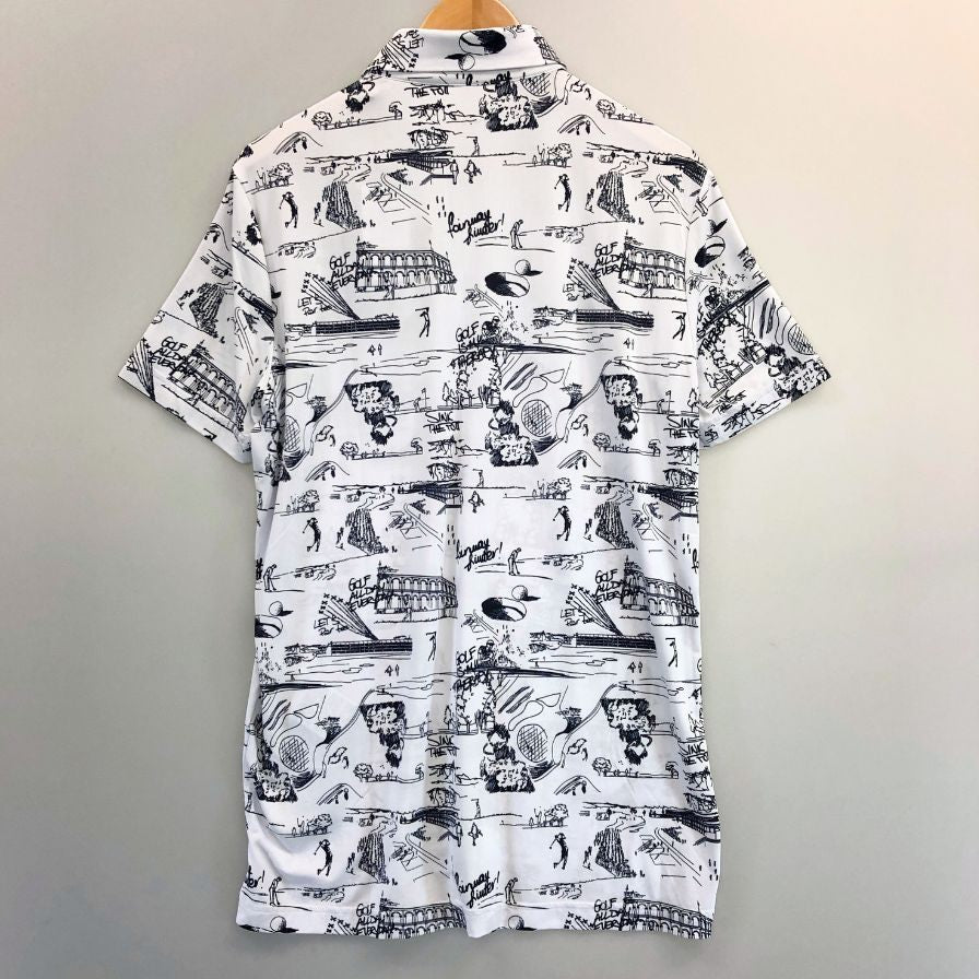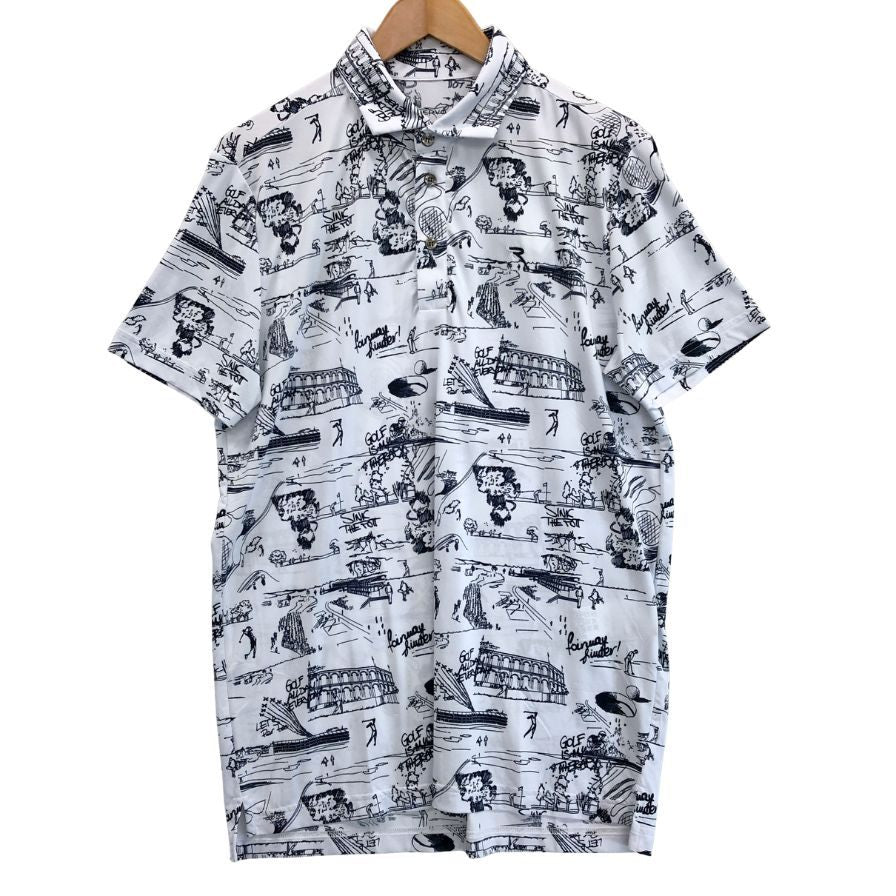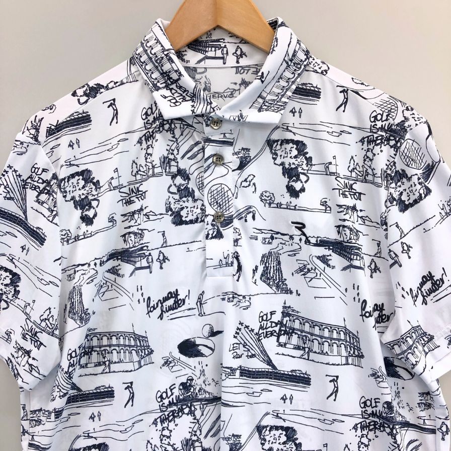 新品同様◆シェルボ ポロシャツ 総柄 ホワイト系 メンズ サイズ48 CHERVO 【AFB45】