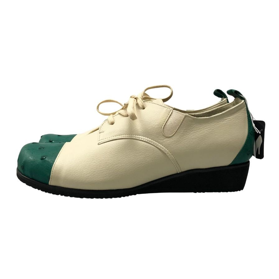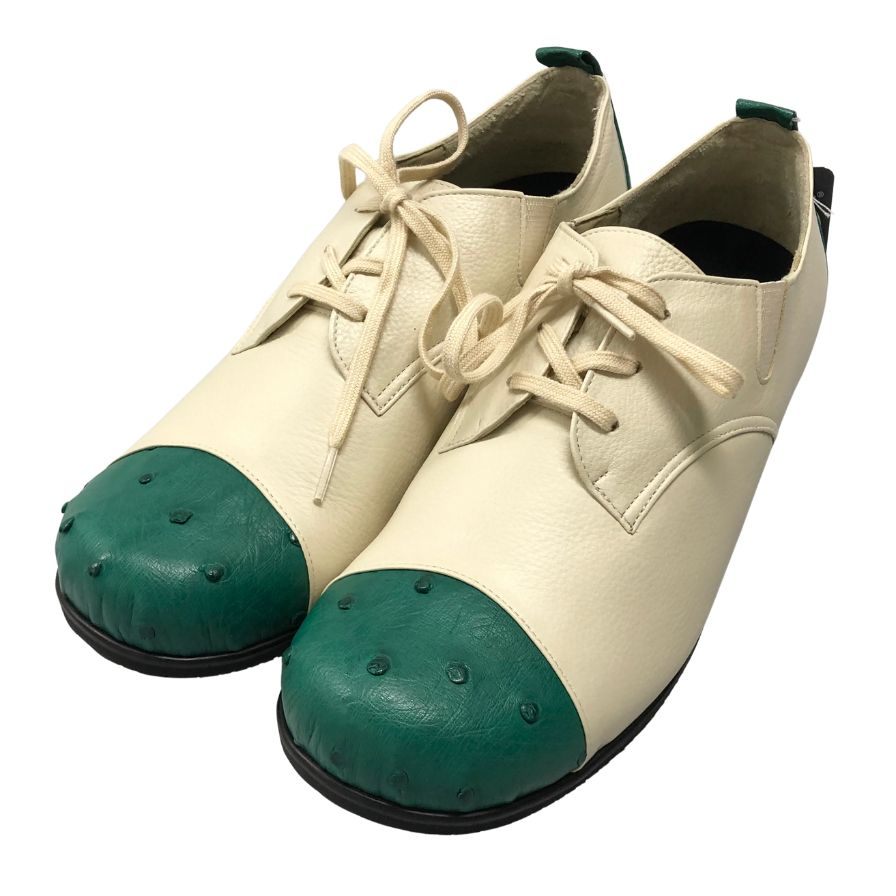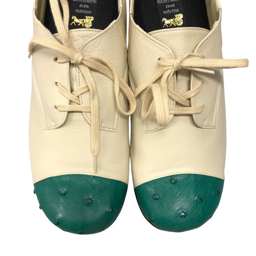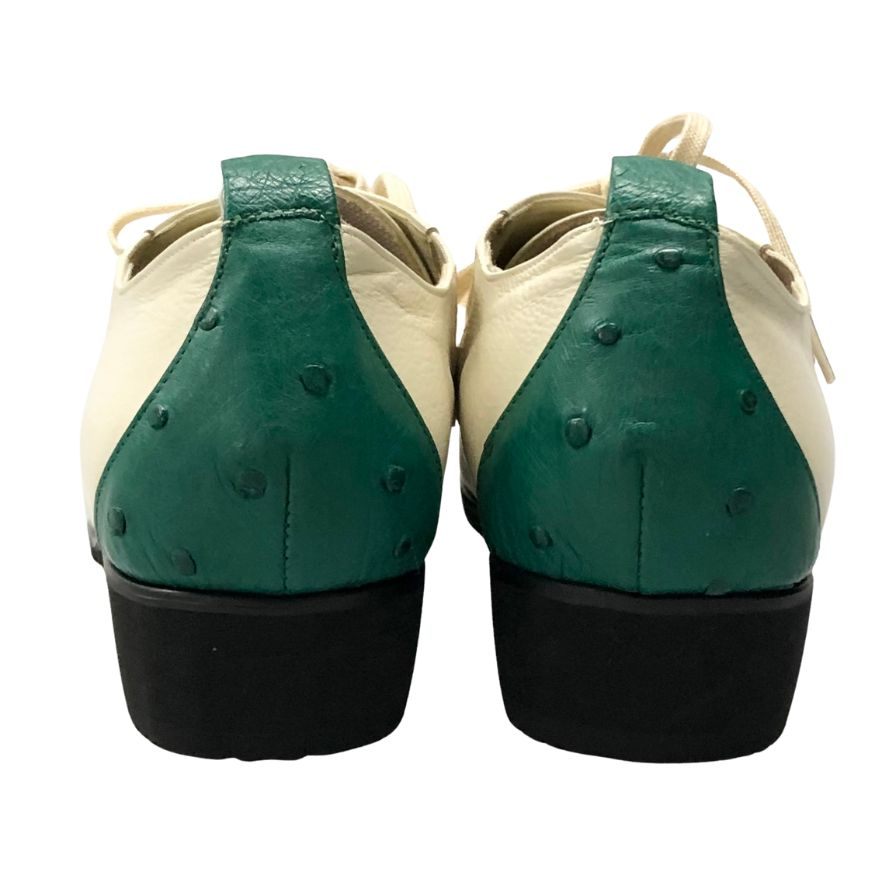 新宿屋 レザースニーカー オーストリッチ 2781-085 ホワイト×グリーン 23.5cm レディース shinjukuya 約23.5cm【7-5】