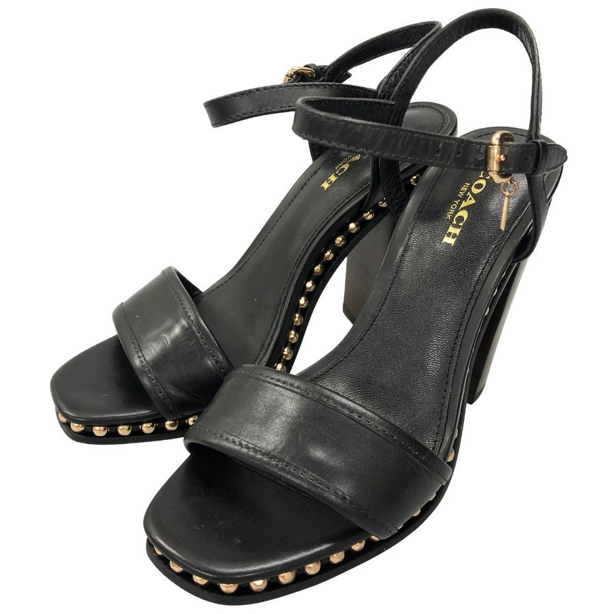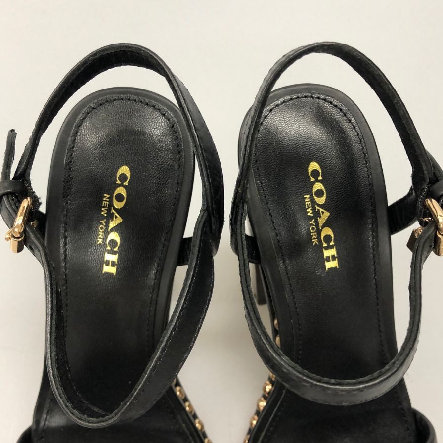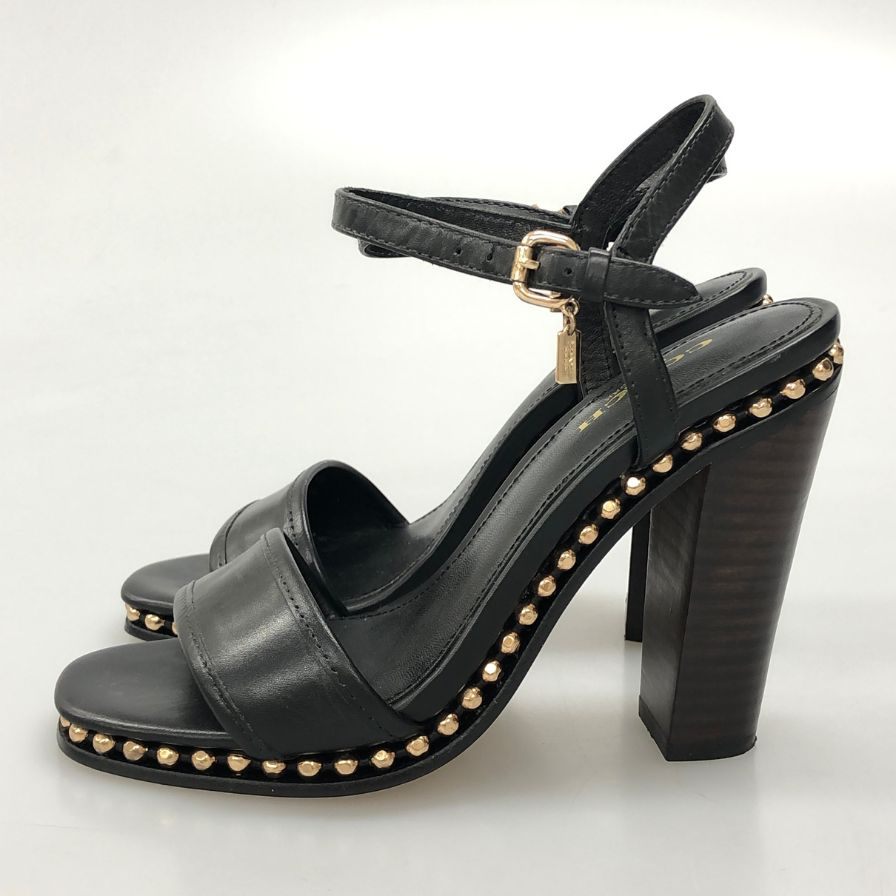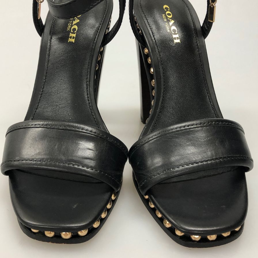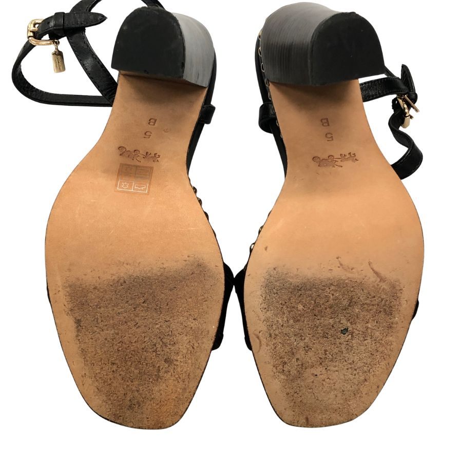 コーチ ヒールサンダル ストラップ ブラック レザー レディース サイズ5B COACH 約23.0cm【AFC42】