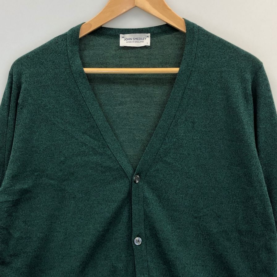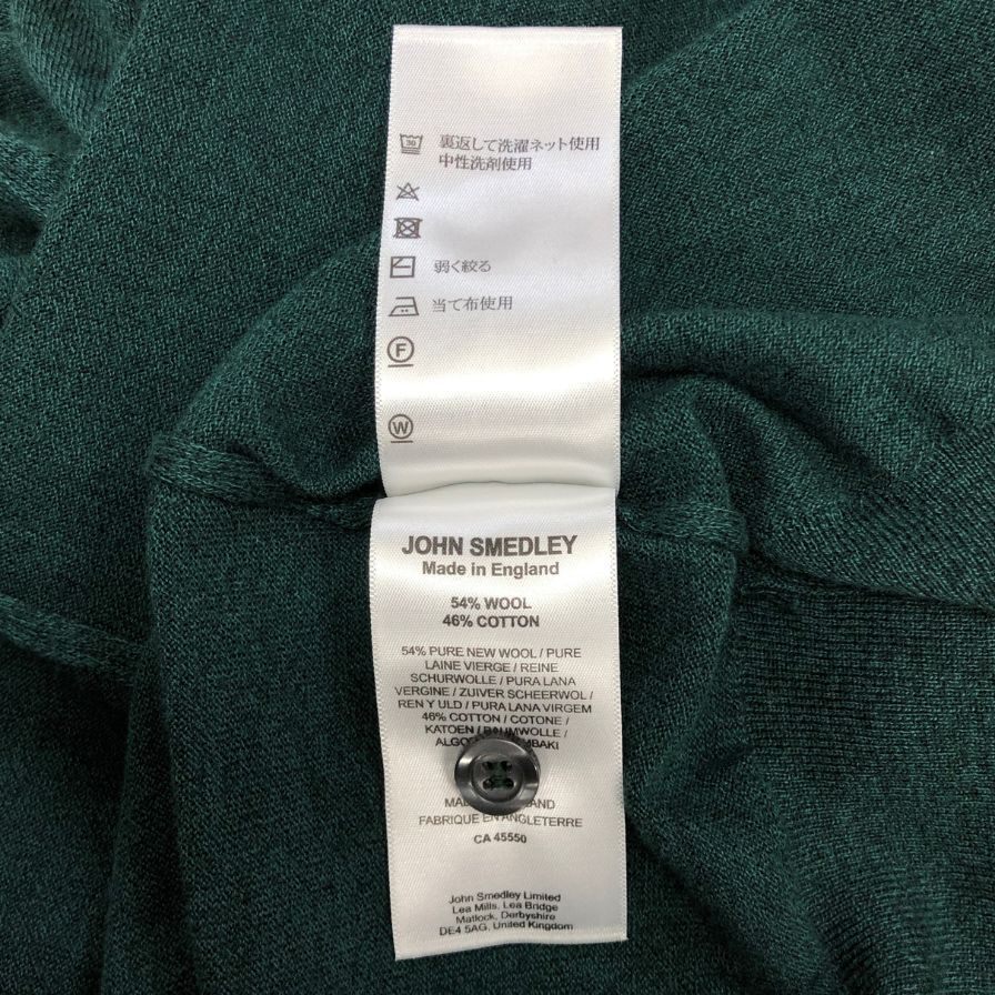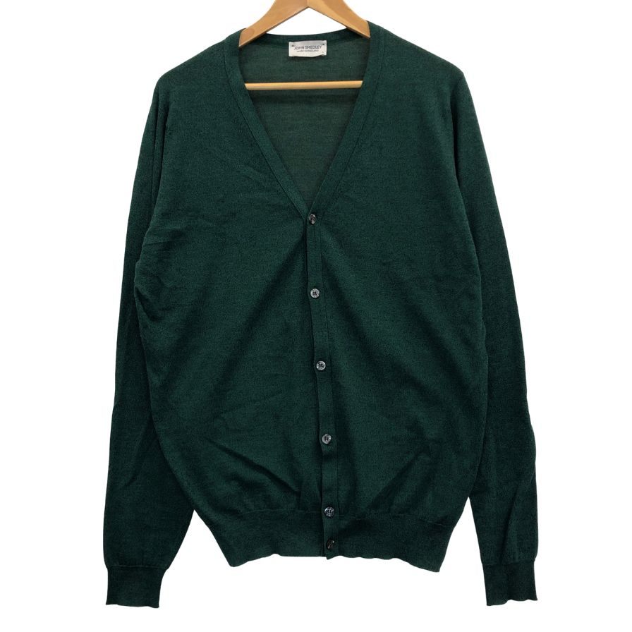 美品◆ジョンスメドレー カーディガン ウール ニット ハイゲージ グリーン メンズ サイズL JOHN SMEDLEY 【AFB3】