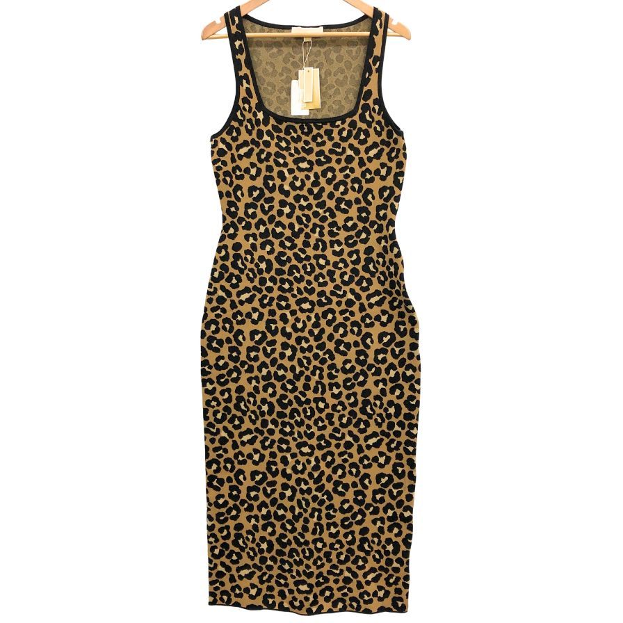 極美品◆マイケルコース ワンピース ノースリーブ ドレス レオパード柄 レディース サイズL 総柄 MICHAEL KORS 【AFB30】