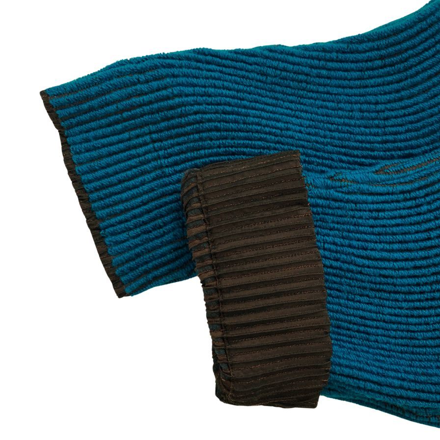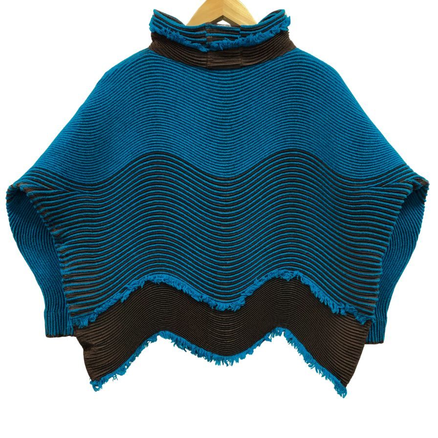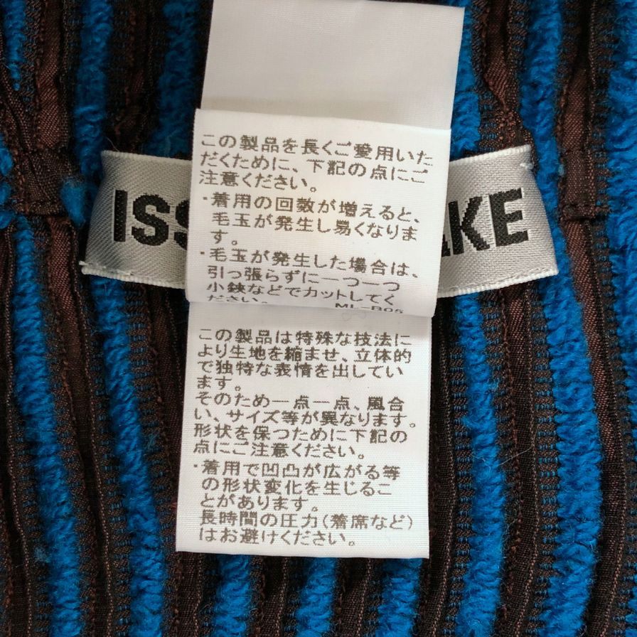 美品◆イッセイミヤケ トップスニットセーター プリーツミックス ウール混 レディース IM84FJ508 ブラウン ブルー サイズ2 ISSEY MIYAKE 【AFB22】