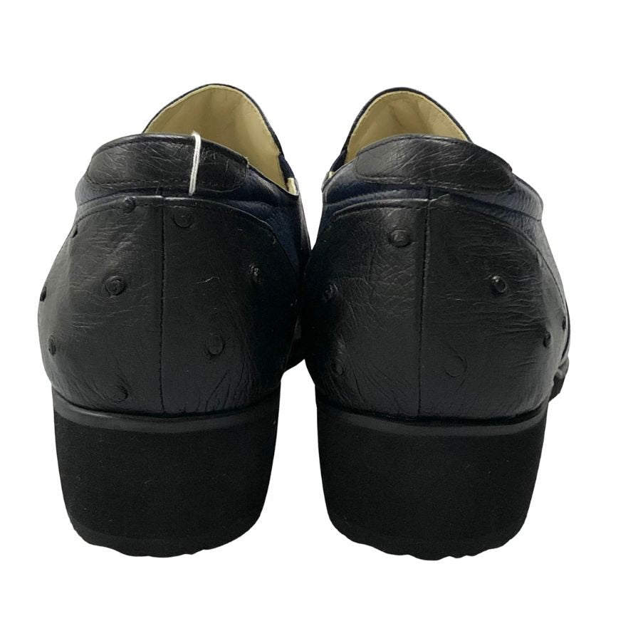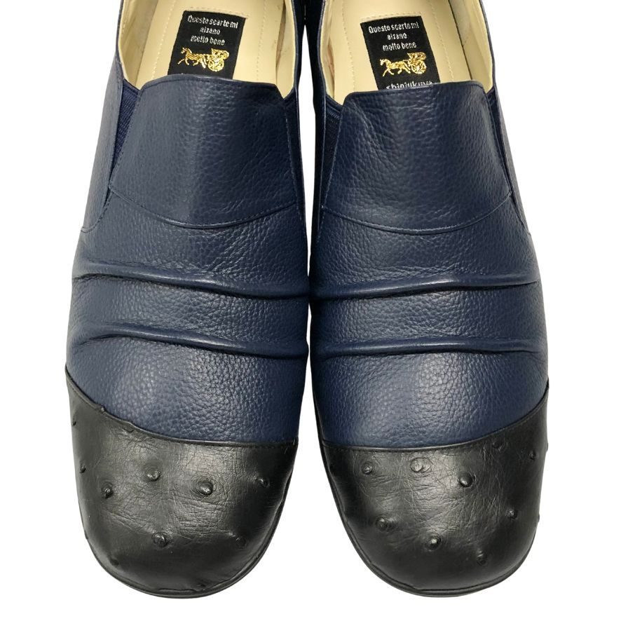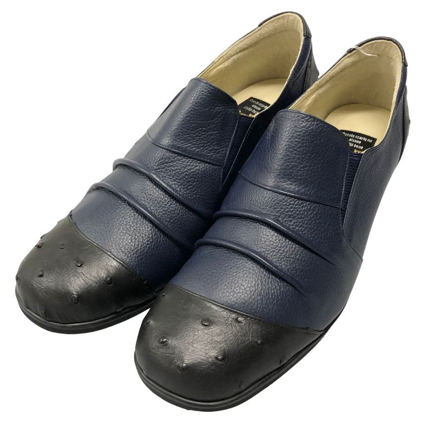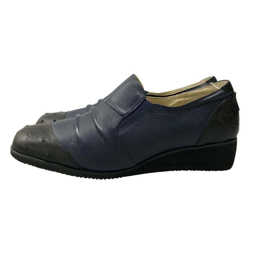 新宿屋 レザースニーカー オーストリッチ 2331-085 ネイビー×ブラック 24.5cm レディース shinjukuya 約24.5cm【7-5】
