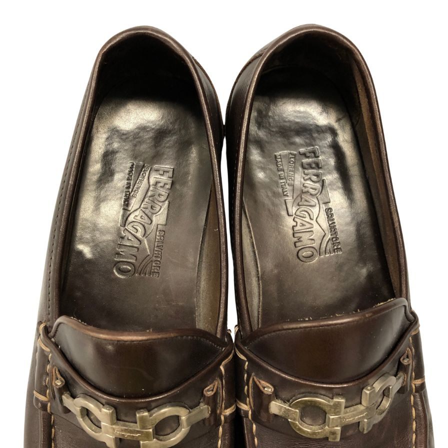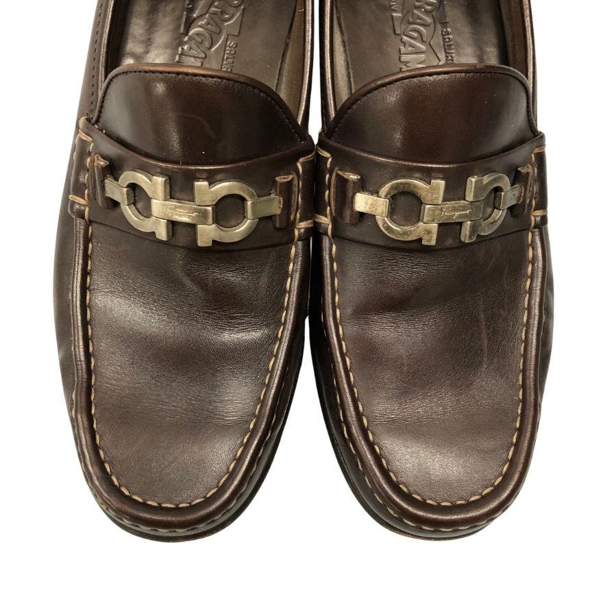 サルヴァトーレフェラガモ ローファー レザー ホース ビット ガンチーニ ブラウン メンズ サイズ UK8 Salvatore Ferragamo 約26.5cm【AFC2】
