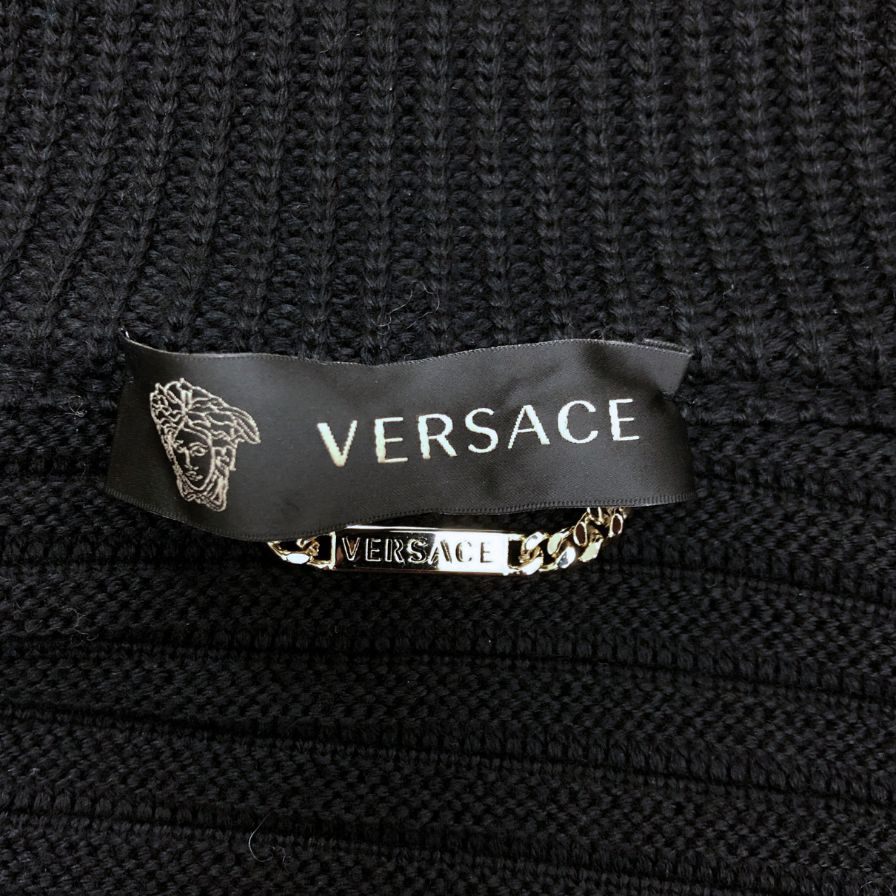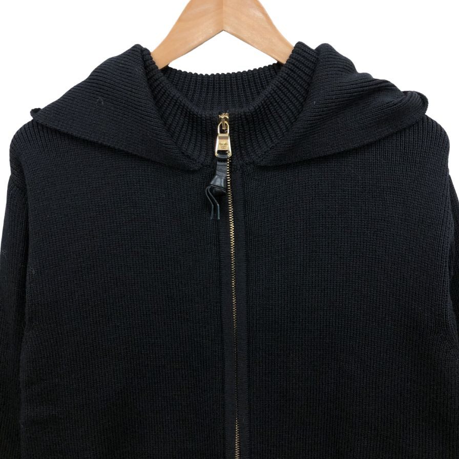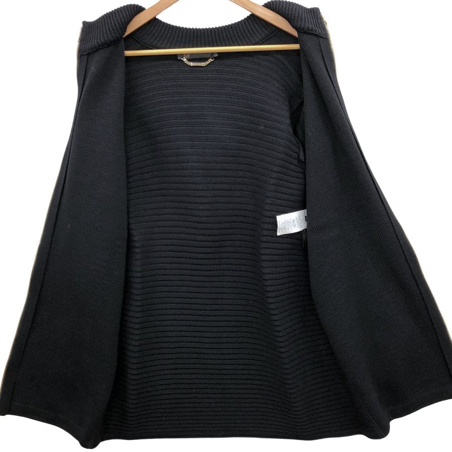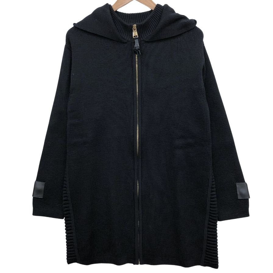 極美品◆ジャンニヴェルサーチ ニット フーディーコート ウール100% ゴールドジップ レディース サイズ40 ブラック GIANNI VERSACE 【AFB23】