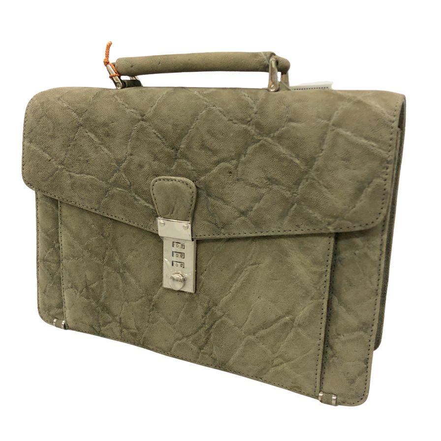 ノーブランド ハンドバッグ エレファント レザー 象 本革 グレー【AFE11】