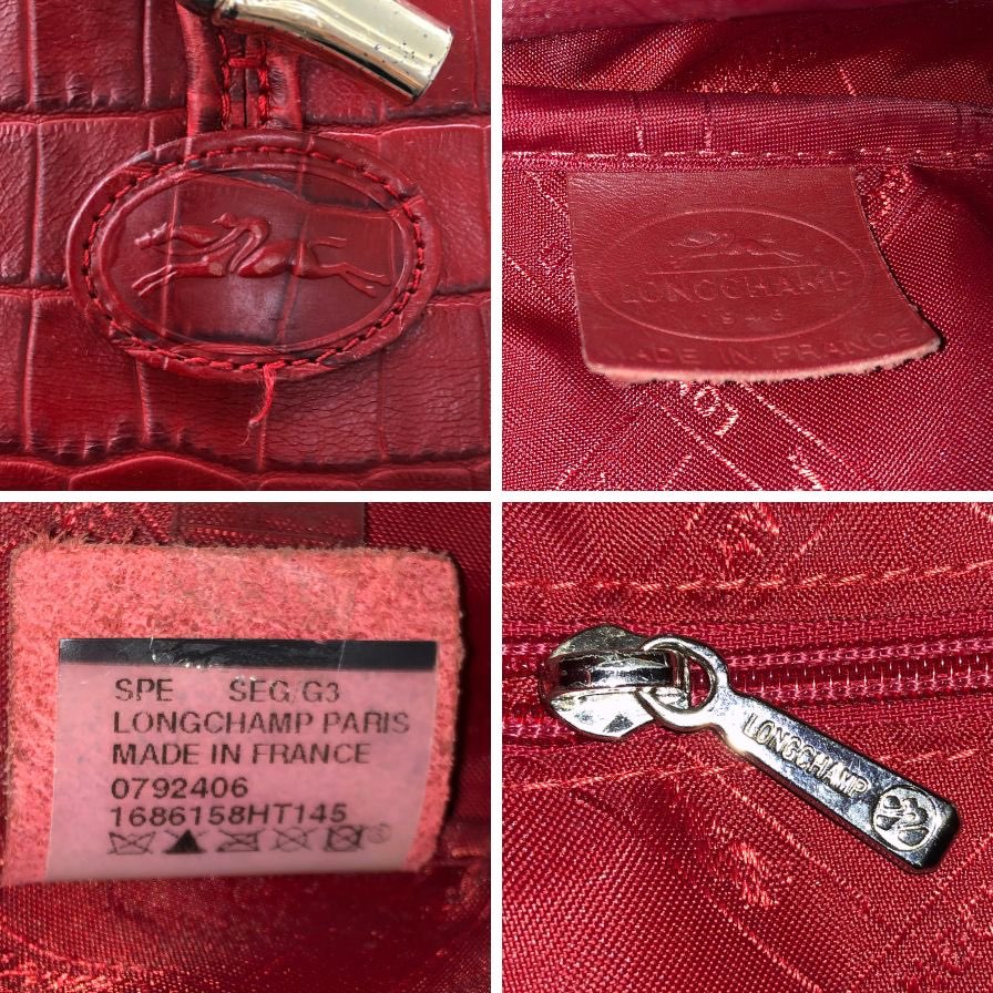 ロンシャン トートバッグ ロゾ クロコ型押し カーフ レッド LONGCHAMP【AFE10】
