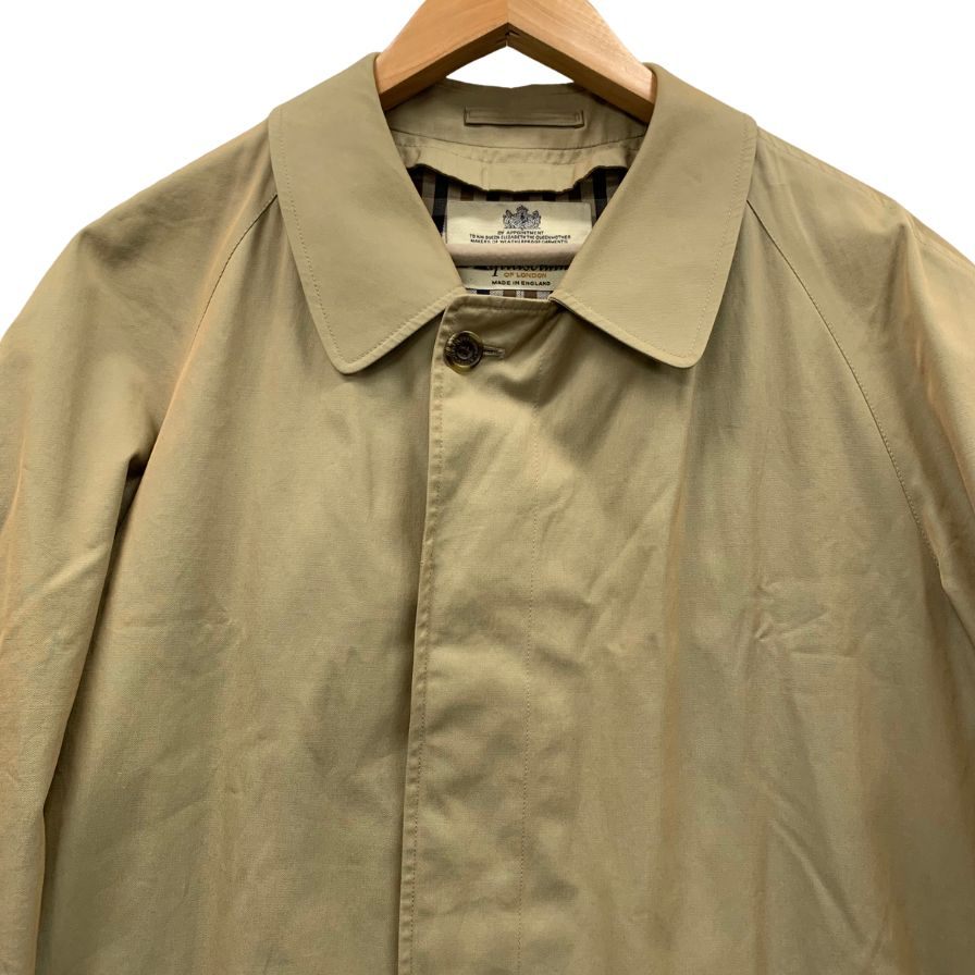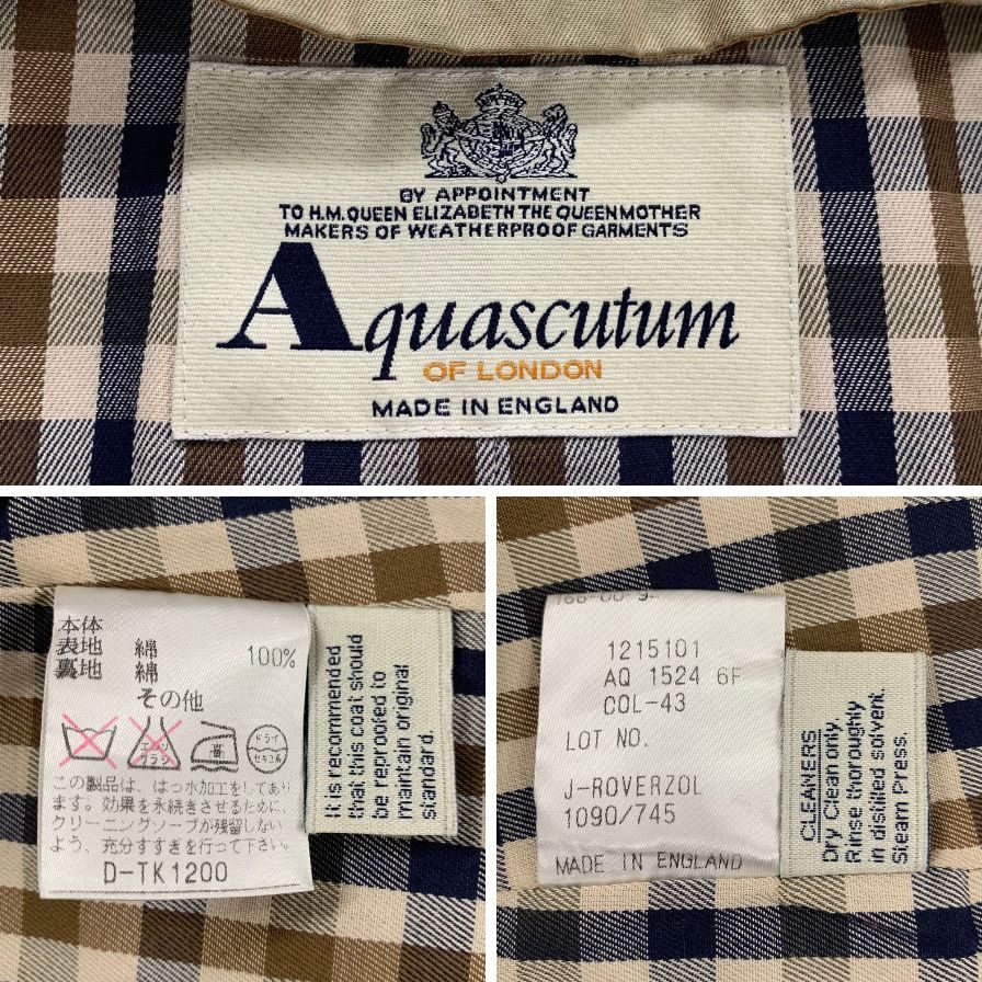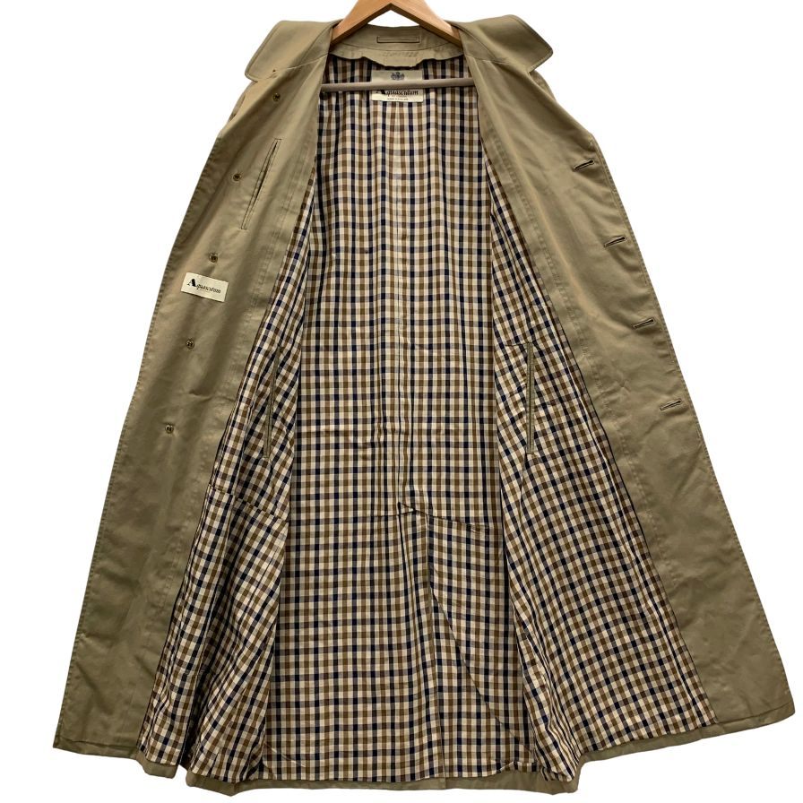 美品◆アクアスキュータム ステンカラーコート 比翼仕立て 玉虫 コットン 裏チェック 英国製 ベージュ サイズ6F Aquascutum 【AFA2】