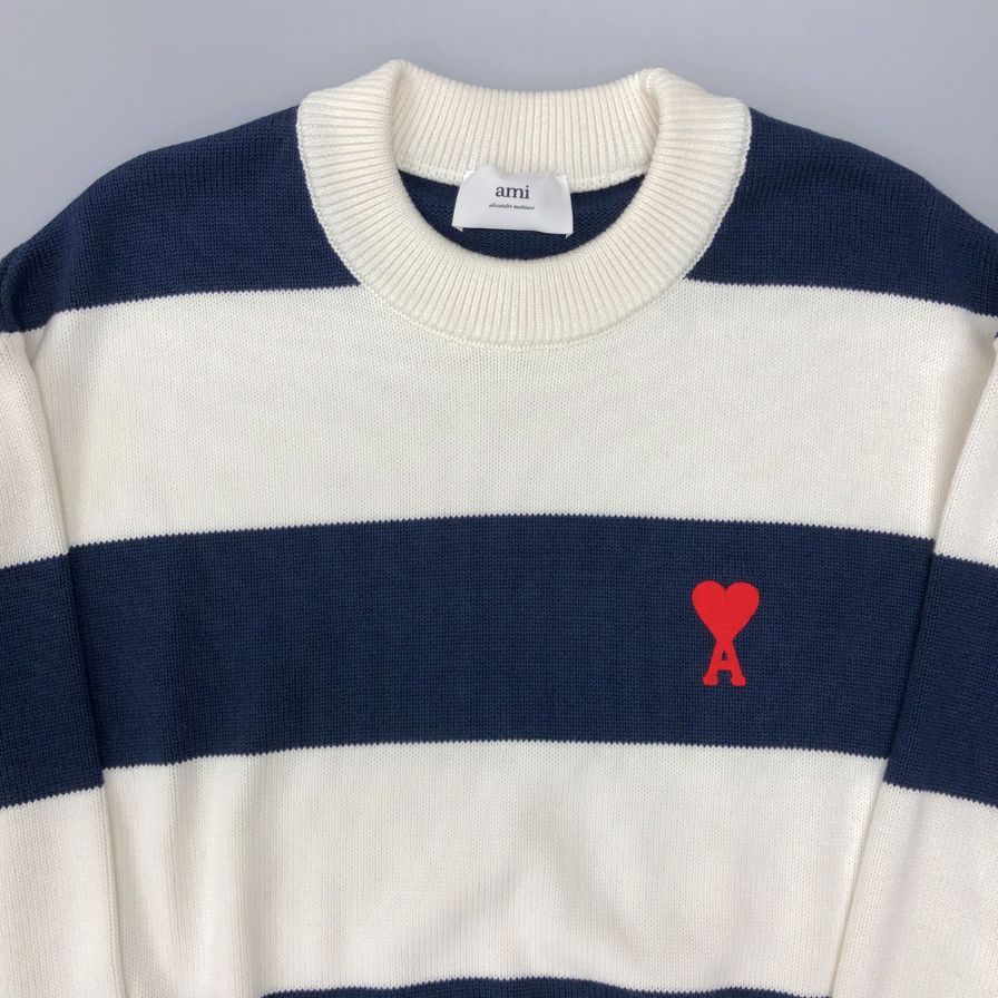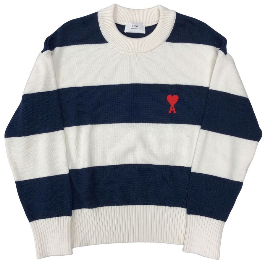 極美品◆アミ パリ トップス ボーダー ニット ハート刺繍 ユニセックス サイズM ホワイト系 ami paris 【AFB38】