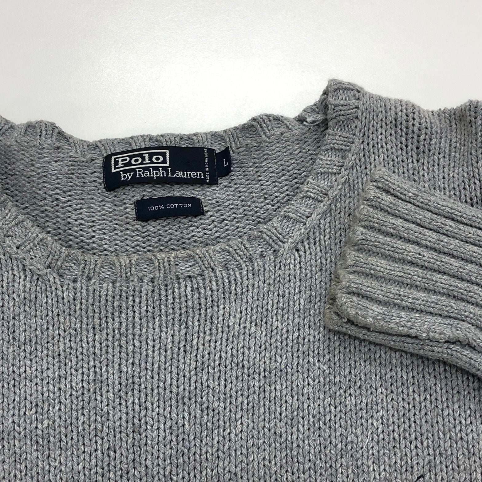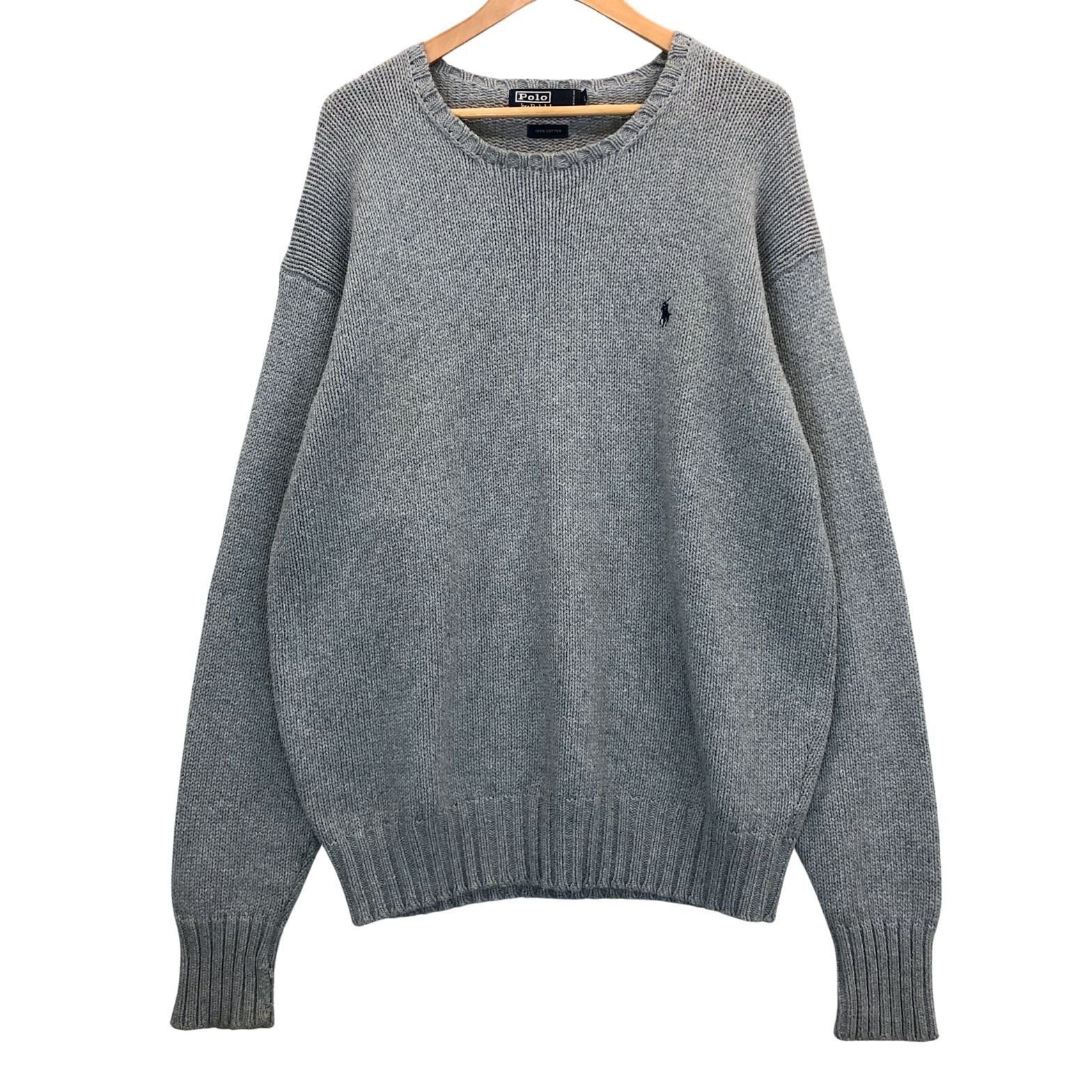 中古◆ポロ ラルフローレン ハンドニット グレー コットン メンズ サイズL Polo Ralph Lauren 【AFB38】