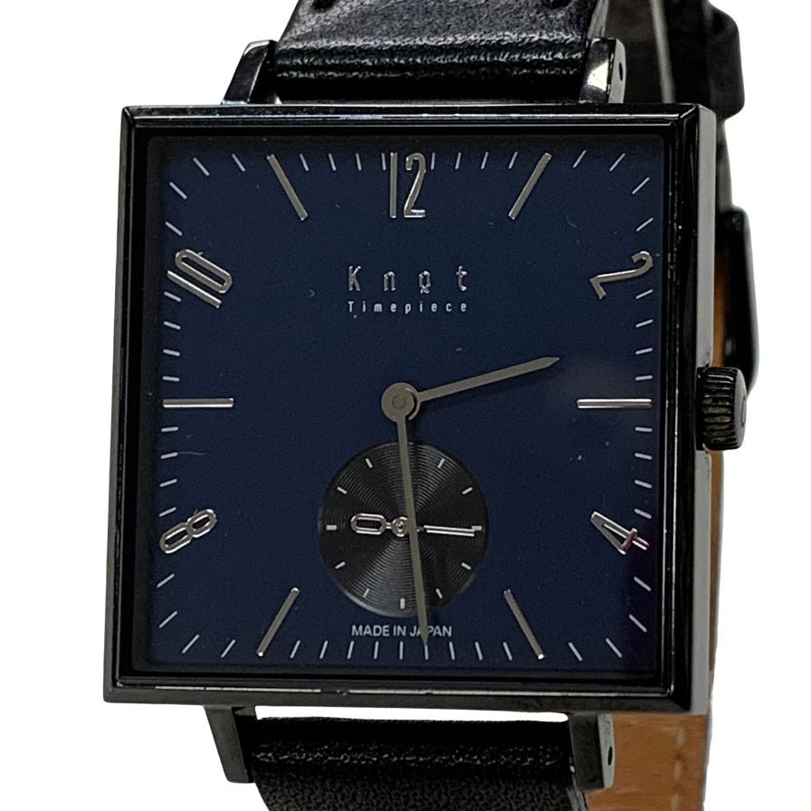 ブランド | ノット 腕時計 クオーツ スクエア ネイビー文字盤 レザーベルト メンズ ブラック KNOT |