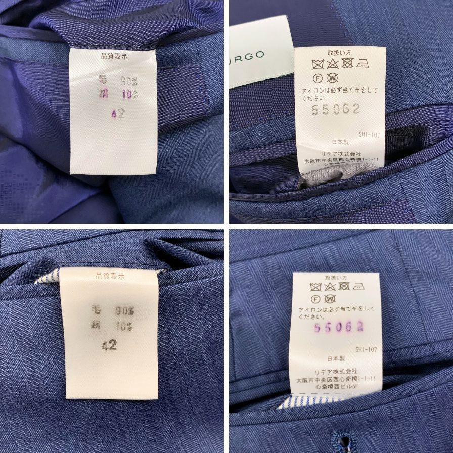 ストラスブル スーツ セットアップ ウール 55062 ブルー サイズ42 メンズ STRASBURGO【AFB38】