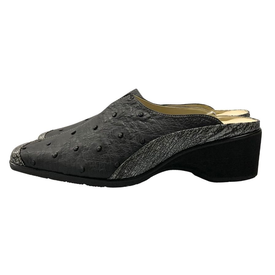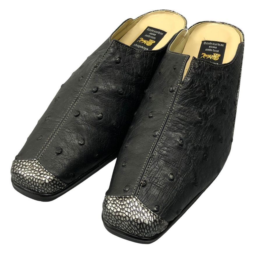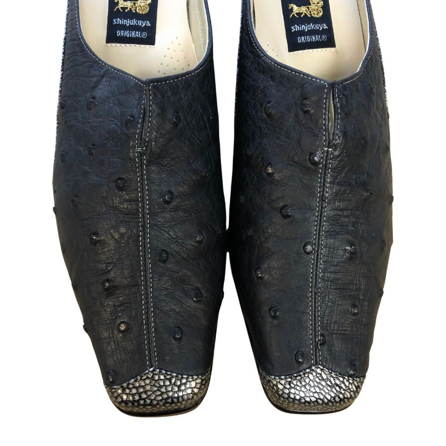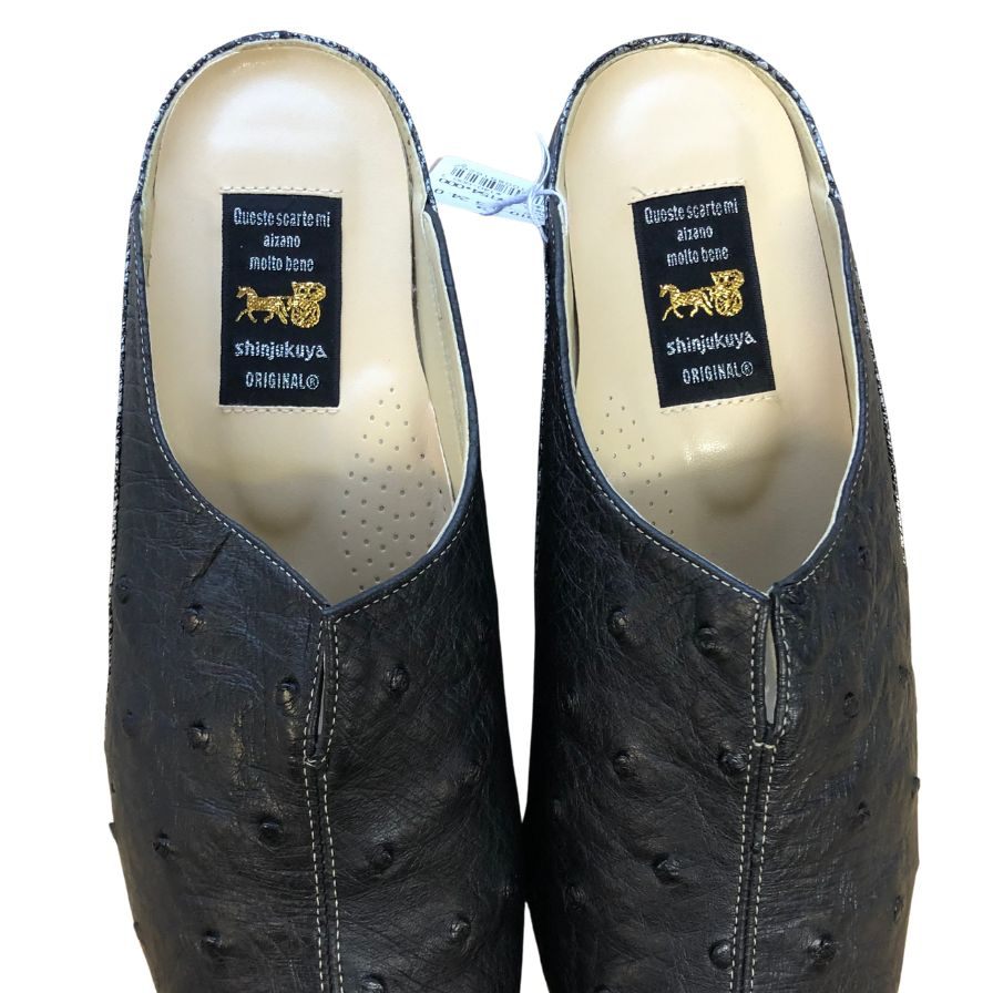 新宿屋 レザーサンダル レザー×オーストリッチ 4910-085 ブラック 24.0cm レディース shinjukuya 約24.0cm【7-7】