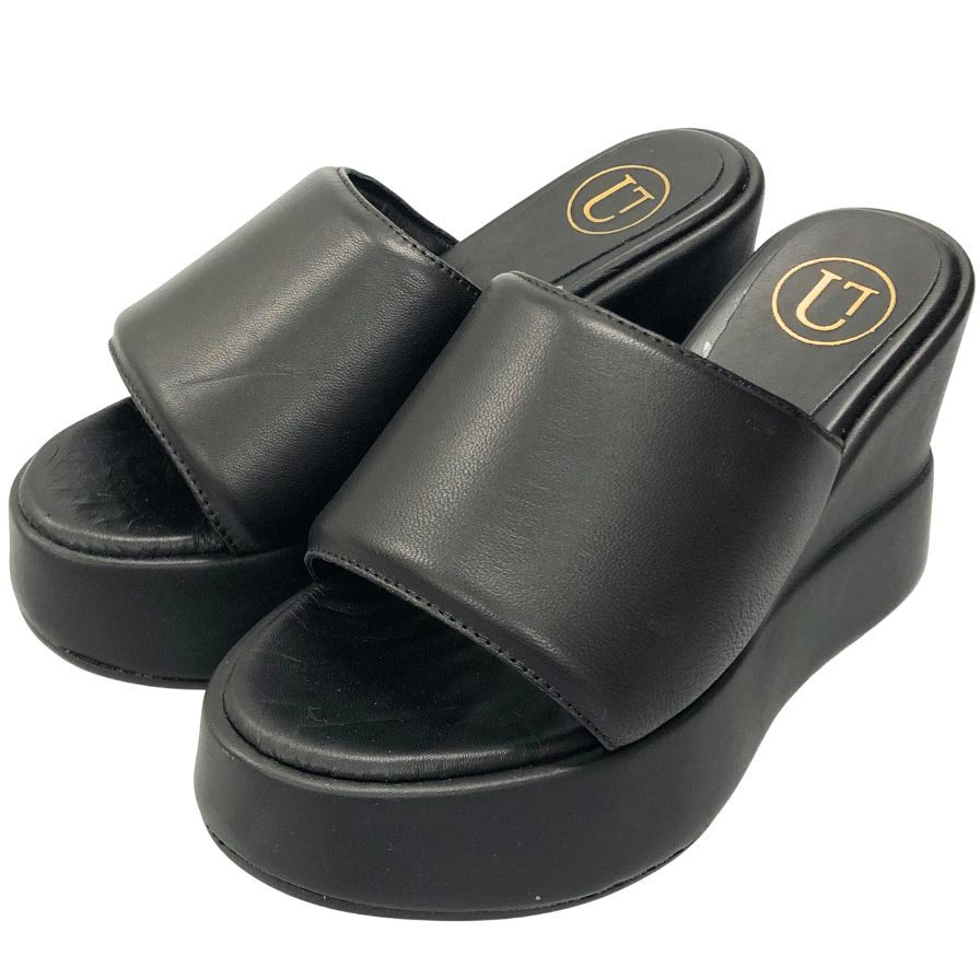 ラボラツィオーネアルティッジャーナ 厚底サンダル レザー ブラック レディース サイズ36 lavorazione artigiana 約22.5cm【AFC4】
