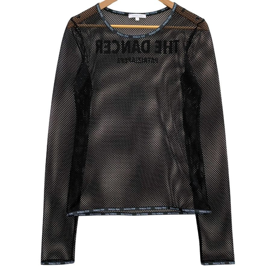 極美品◆パトリツィアペペ 長袖トップス メッシュ レディース サイズ3 イタリア製 ブラック PATRIZIA PEPE 【AFB29】