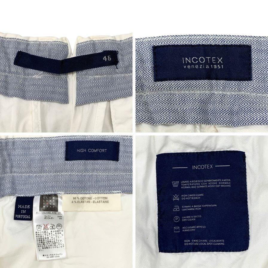インコテックス ノープリーツパンツ コットン ホワイト サイズ46 メンズ INCOTEX 【AFB21】