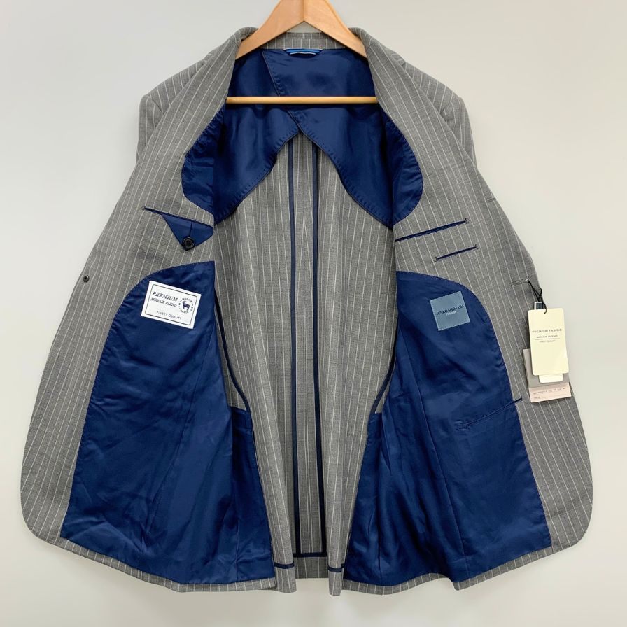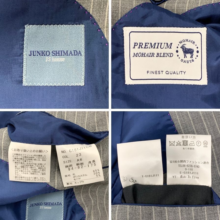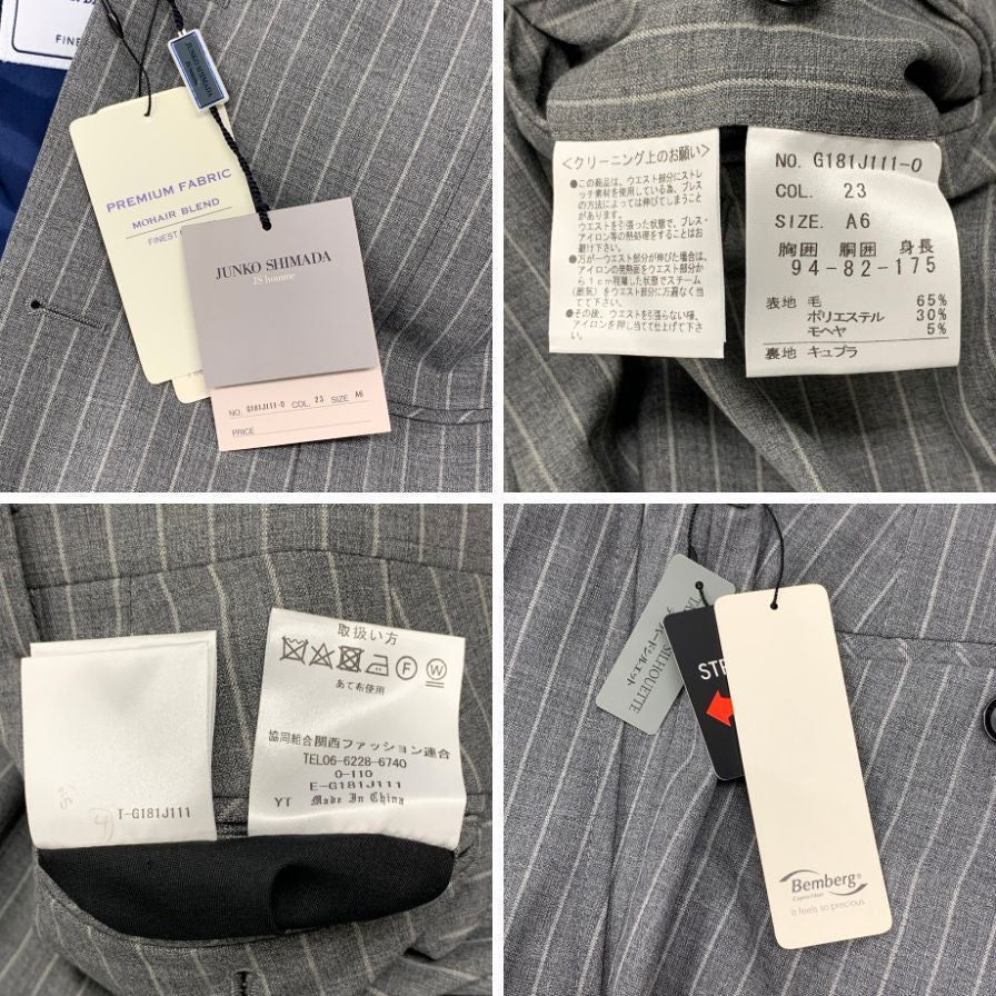 ジュンコシマダ スーツ 3B サイドベンツ グレー ストライプ サイズA6 JUNKO SHIMADA【AFB35】