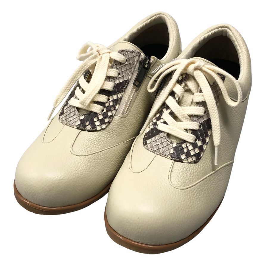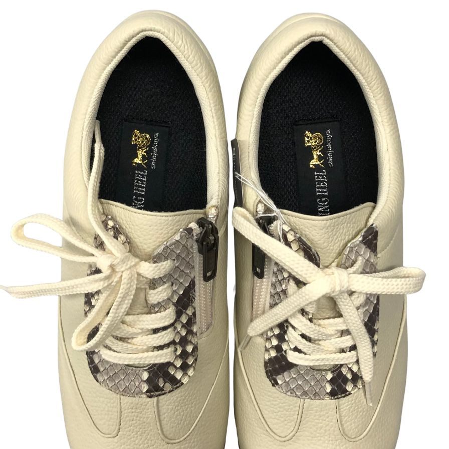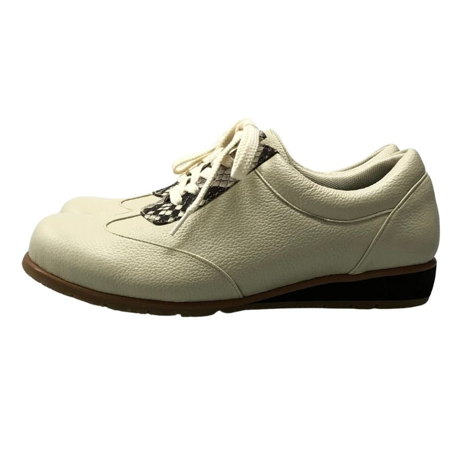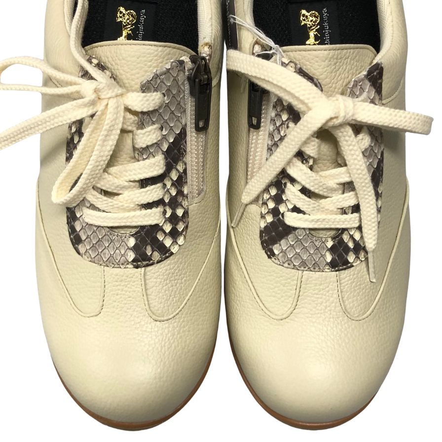 新宿屋 レザースニーカー レザー×パイソン 0250-545 23.0cm レディース アイボリー shinjukuya 約23.0cm【7-8】