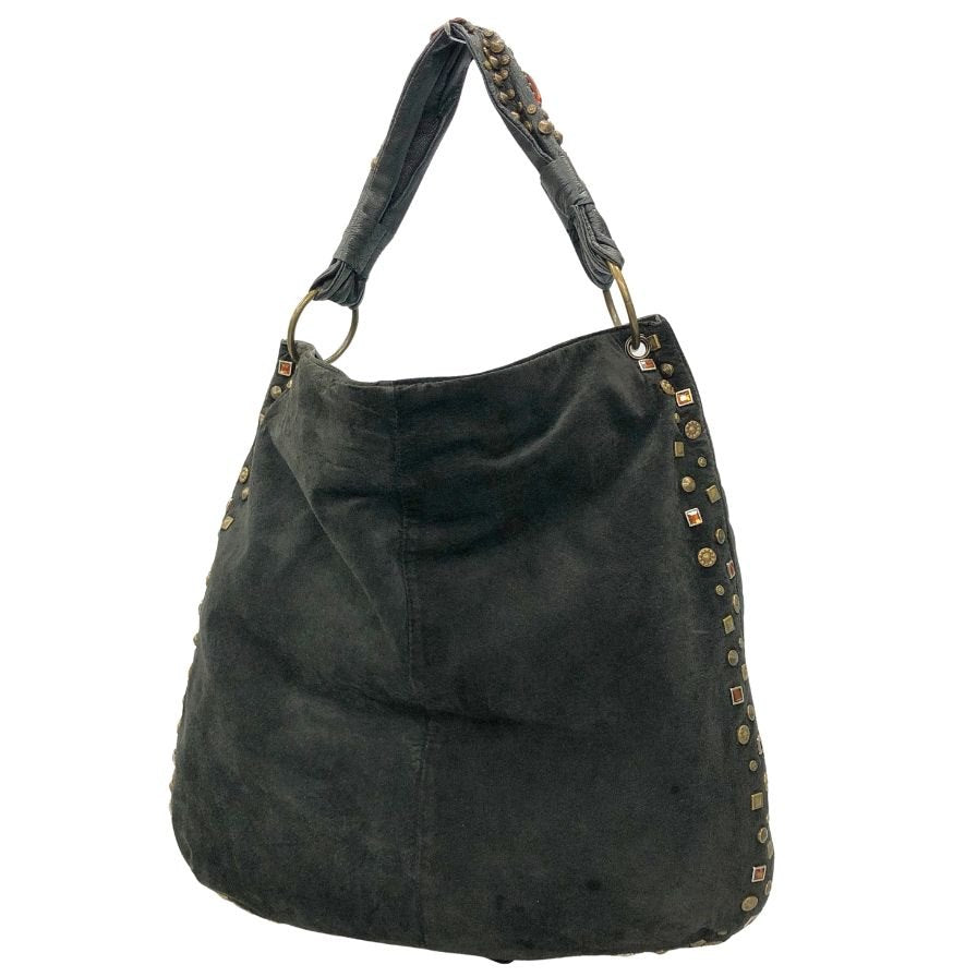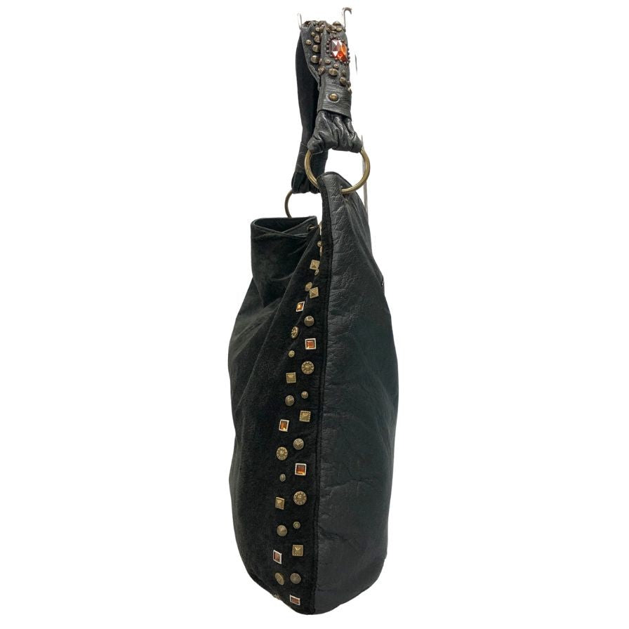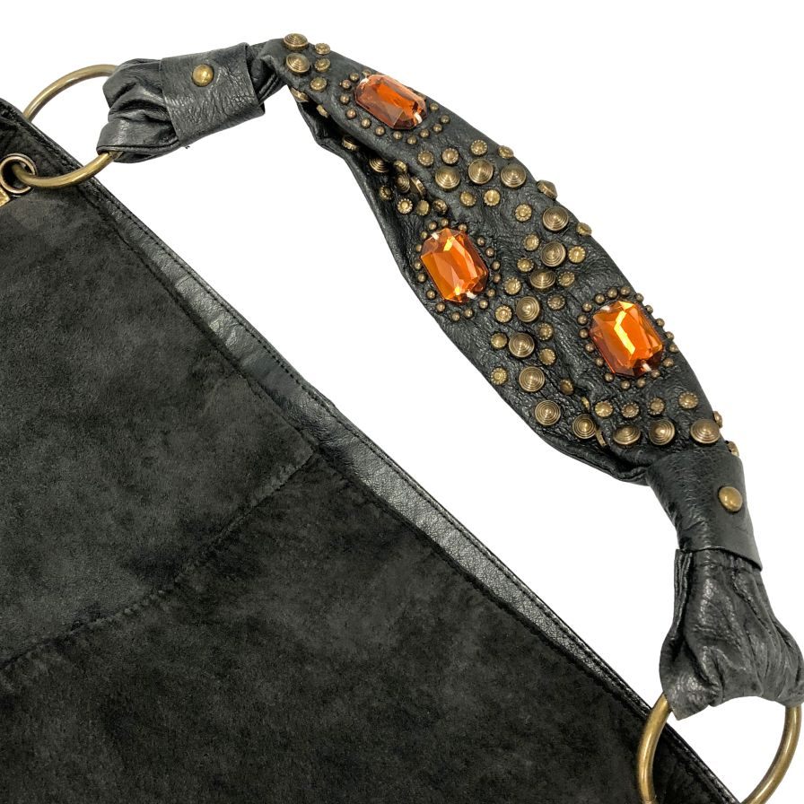 カブキ レザー ハンドバッグ スタッズ レザー×ヌバック レディース ブラック kABUKi【AFE4】