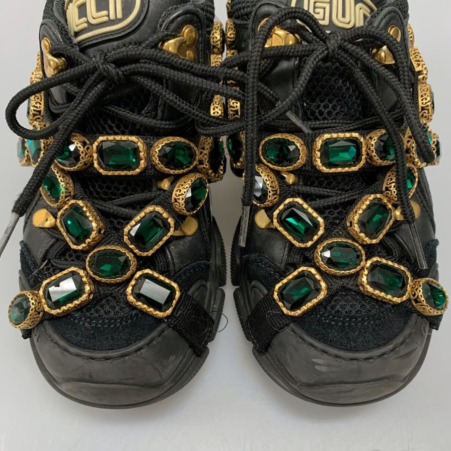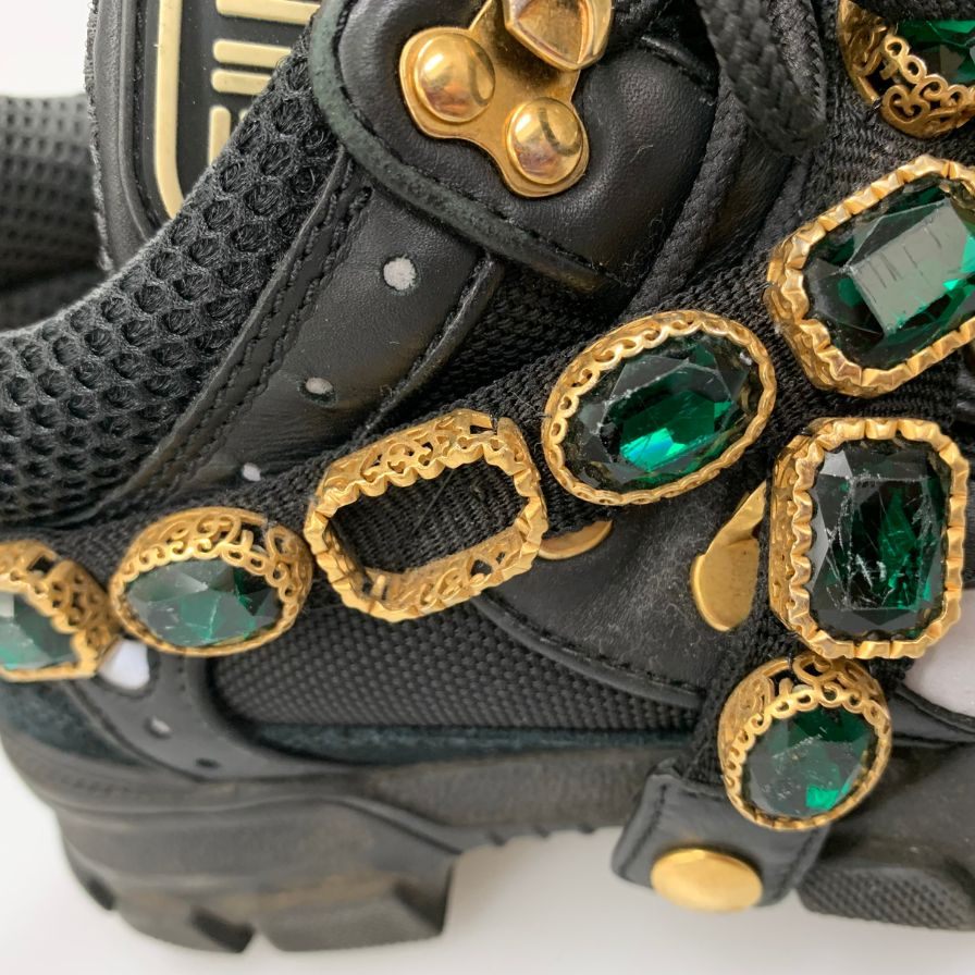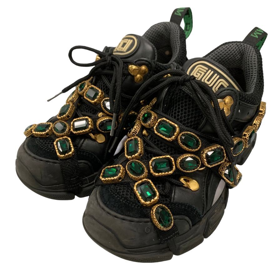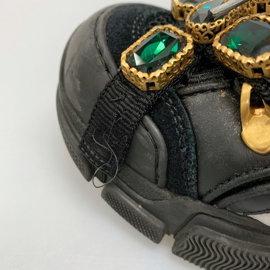 グッチ ローカットスニーカー ラインストーン ベルト ダッド 厚底 ブラック レディース サイズ35 GUCCI 約22.0cm【AFC32】