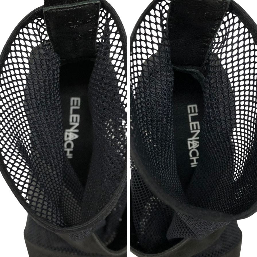 エレナ イアチ メッシュ パンプス ブーテイ スクエアトゥ レディース サイズ36 ブラック ELENA IACHI 約22.5cm【AFC46】