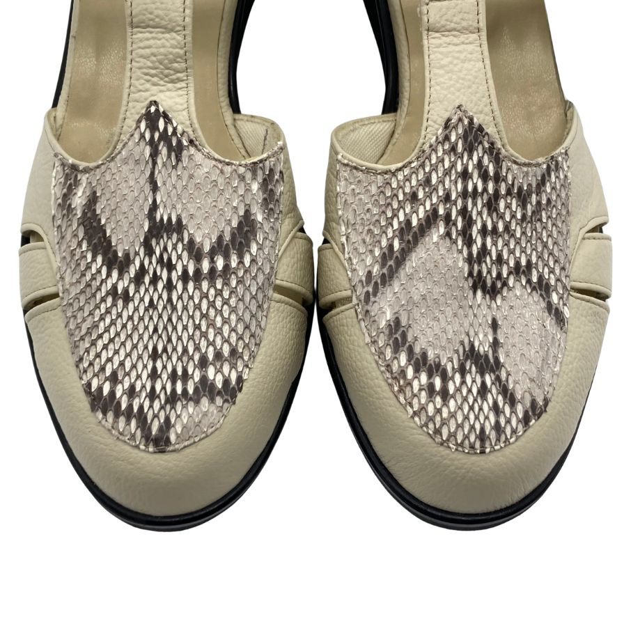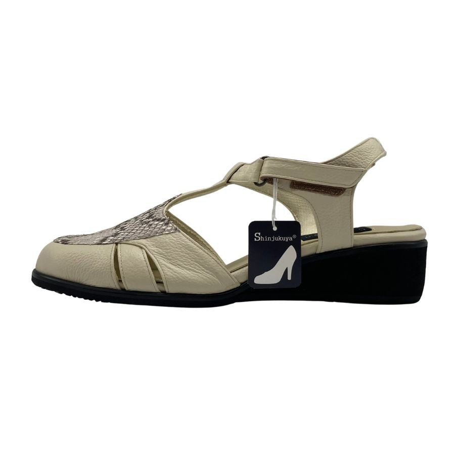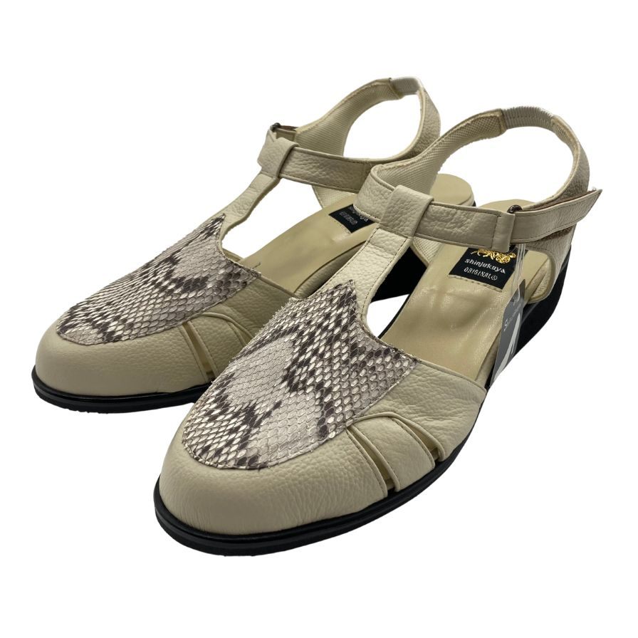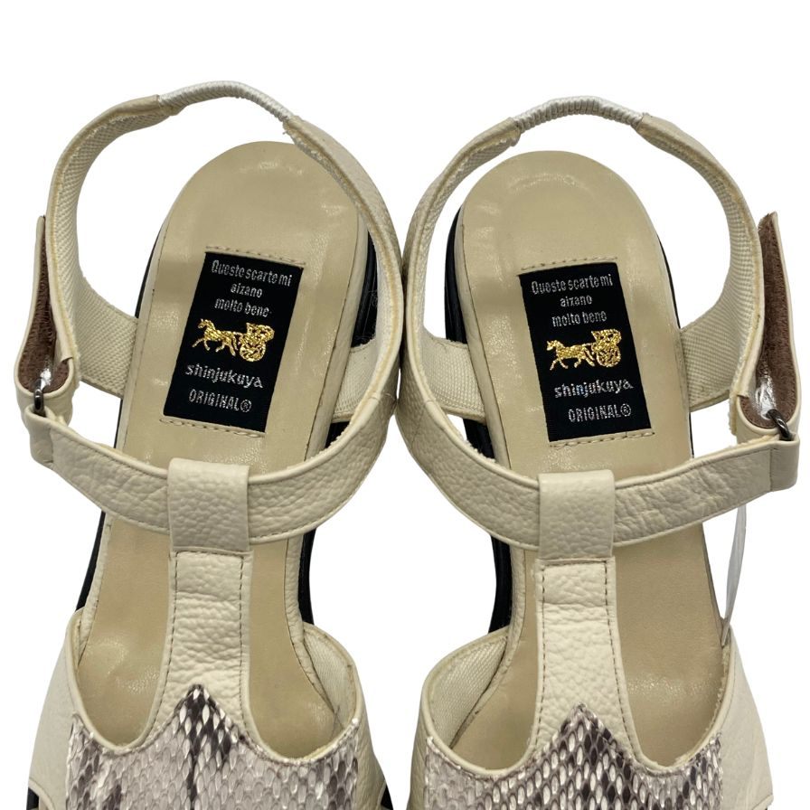 新宿屋 レザーサンダル レザー×パイソン 4500-545 23.5cm レディース アイボリー shinjukuya 約23.5cm【7-7】