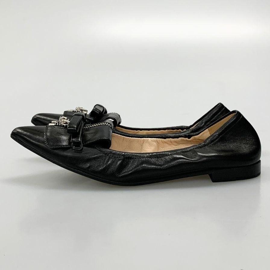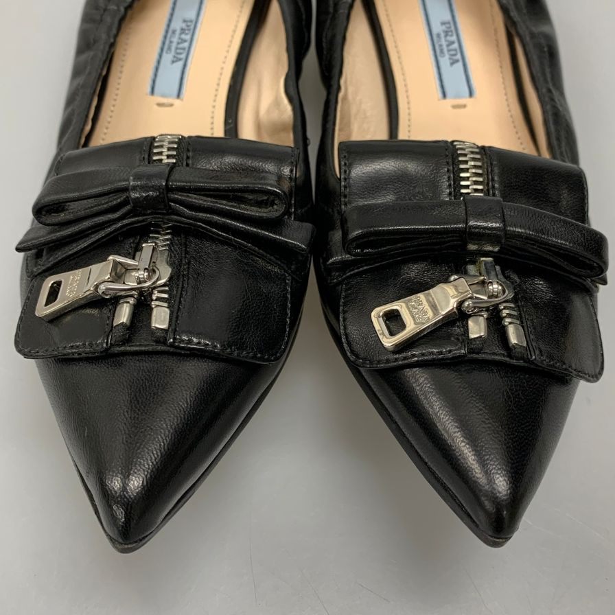 プラダ バレエシューズ フラットシューズ リボン&チャックあしらい レディース サイズ36 ブラック PRADA 約22.5cm【AFC33】