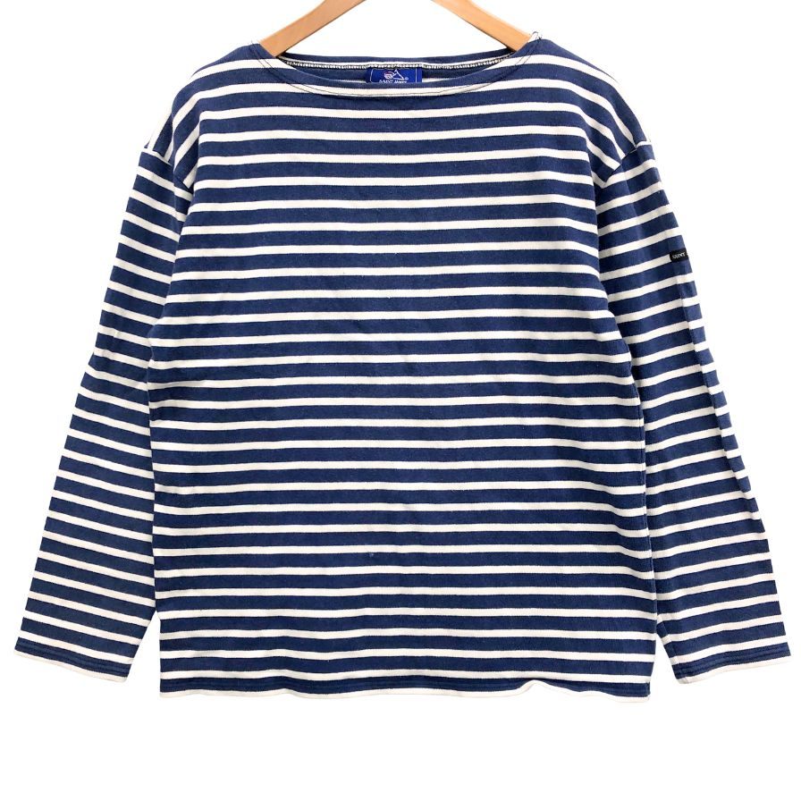 中古◆セントジェームス バスクシャツ ボートネック 長袖 コットン 90s 旧タグ フランス製 ブルー メンズ サイズM SAINT JAMES 【AFB18】