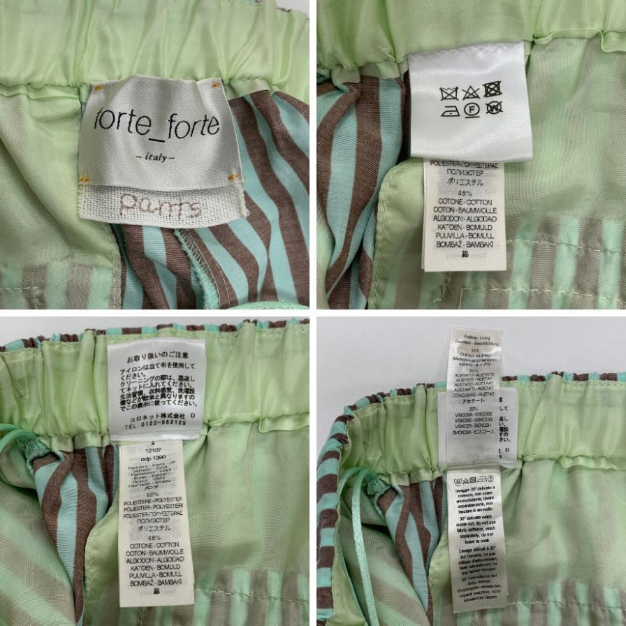 フォルテフォルテ ワイドパンツ ストライプ ウエストゴム イタリア製 レディース サイズ フリー グリーン系 forte_forte 【AFB29】